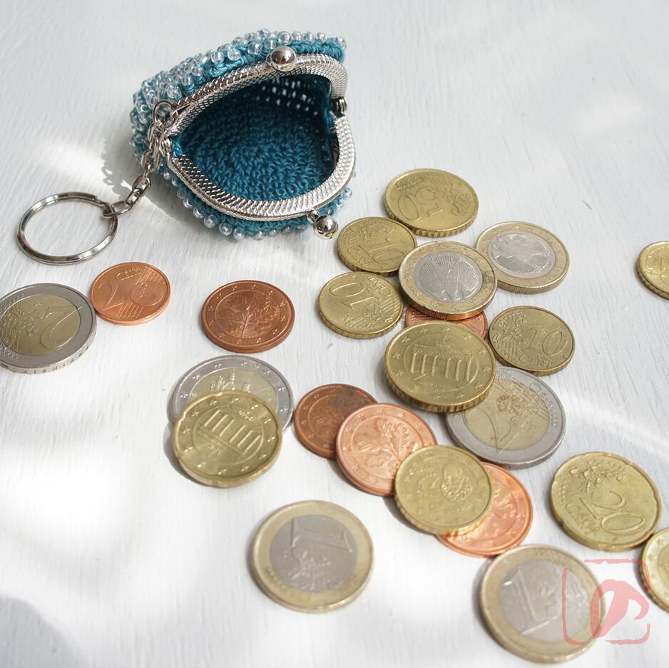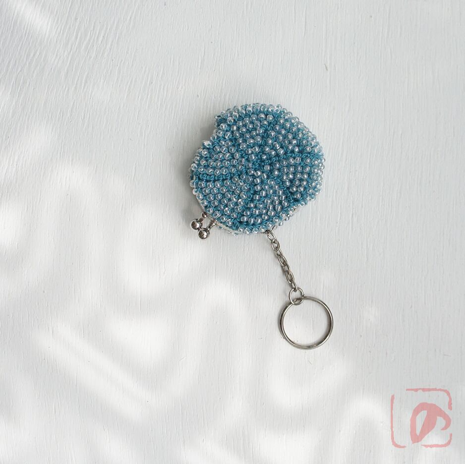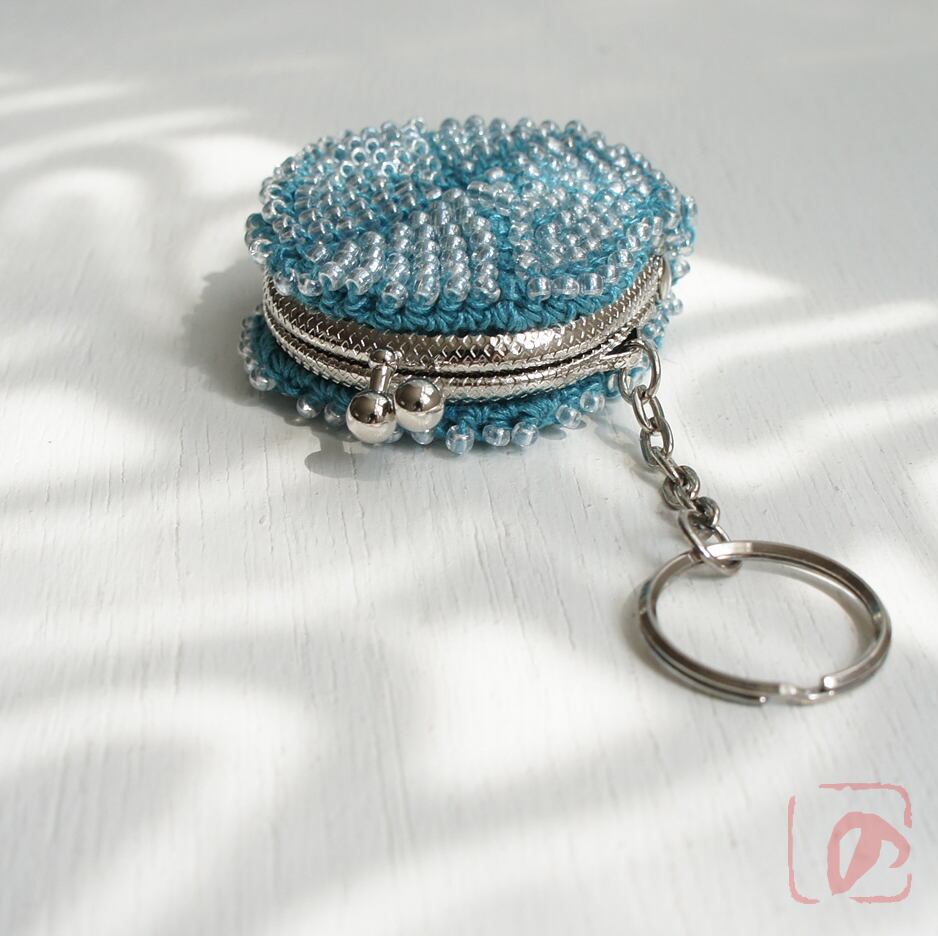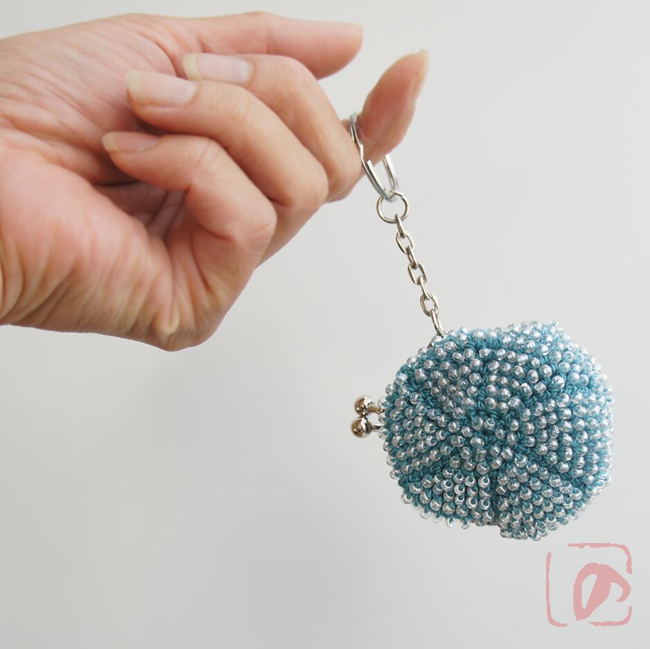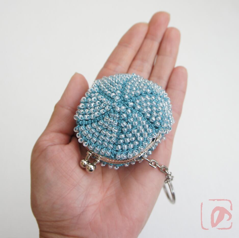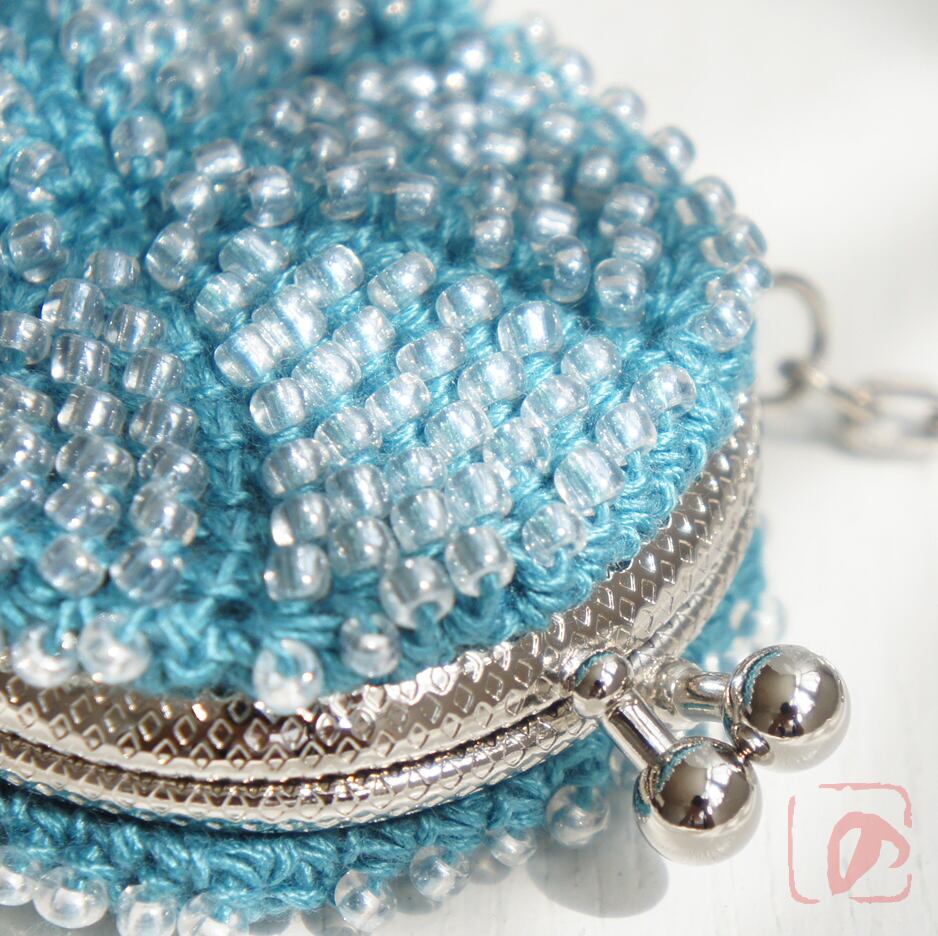 キラキラのガラスビーズをひとつぶづつ編み込んだがま口です。