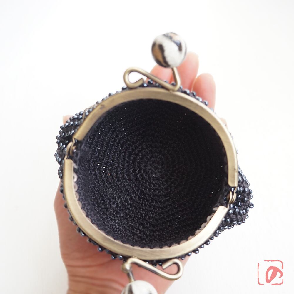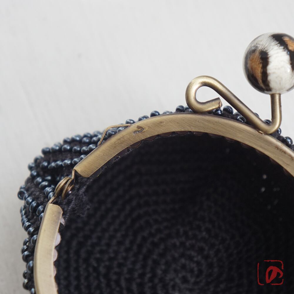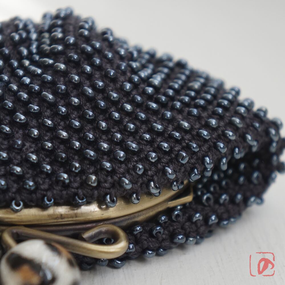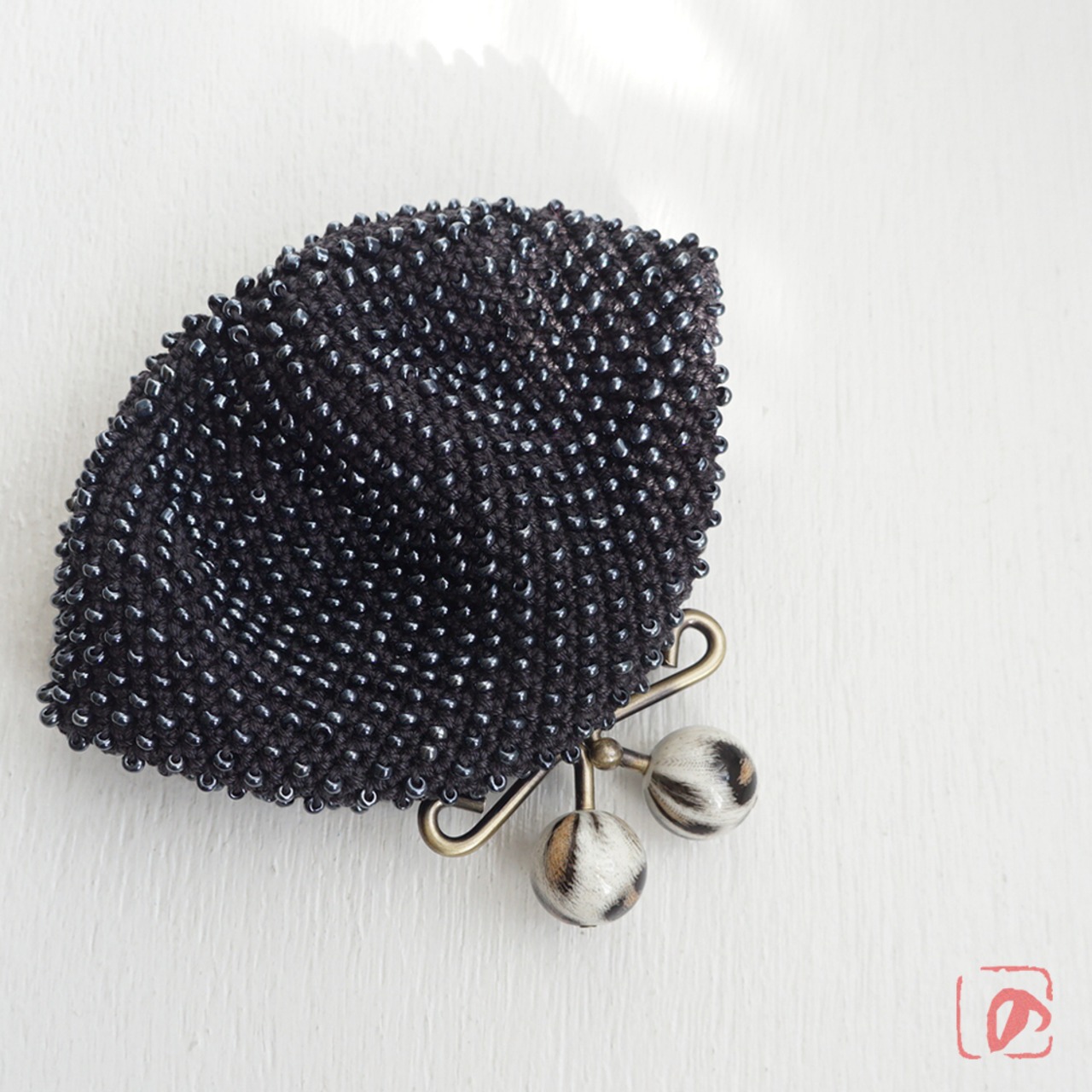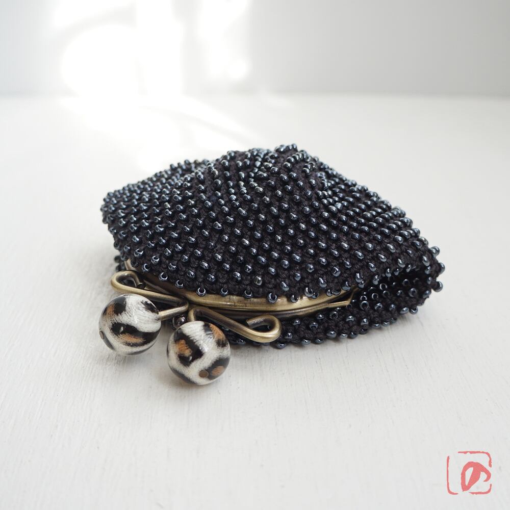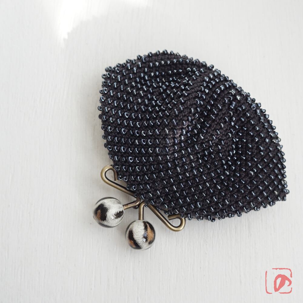 一目飛ばしにビーズを編み込んだ、つぶつぶ感がカワイイがま口。