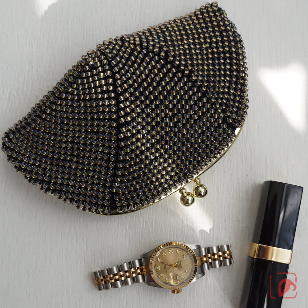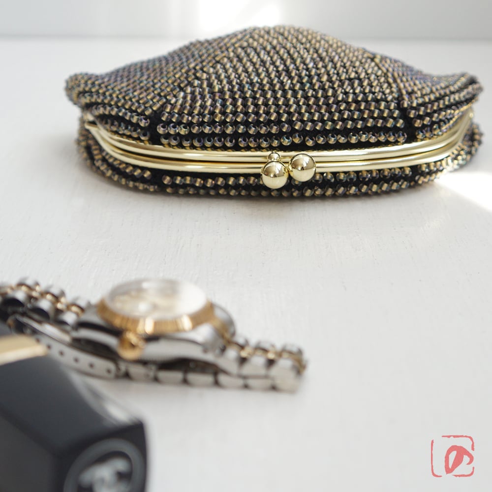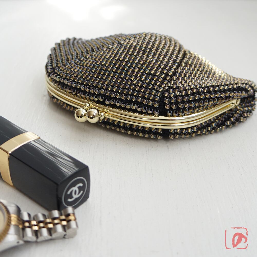 3mmの日本製ビーズをひとつぶづつ全面に編み込んだ上質ながま口です。