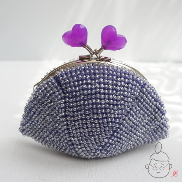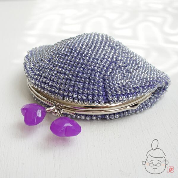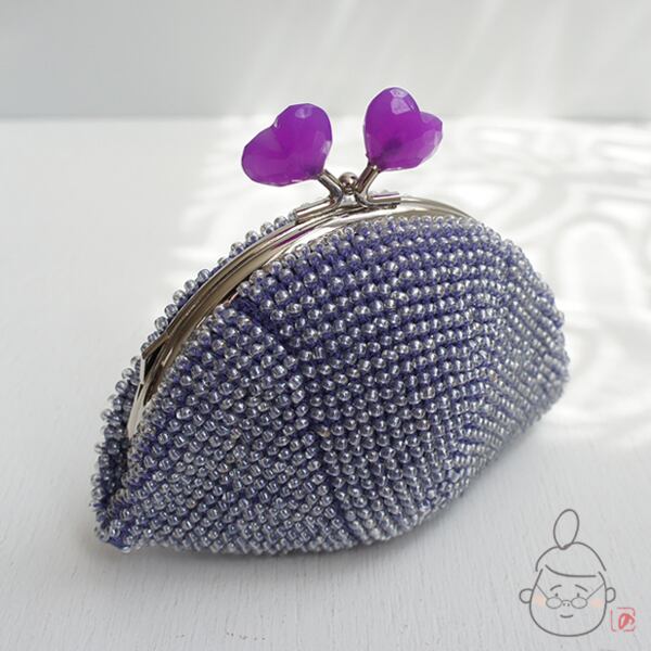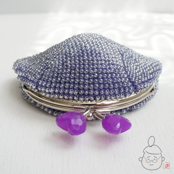 ばあば作♥大きめ全部ガラスビーズがま口(violet・894)