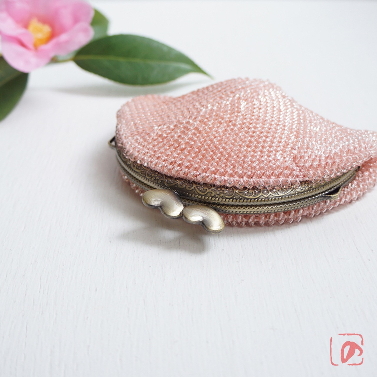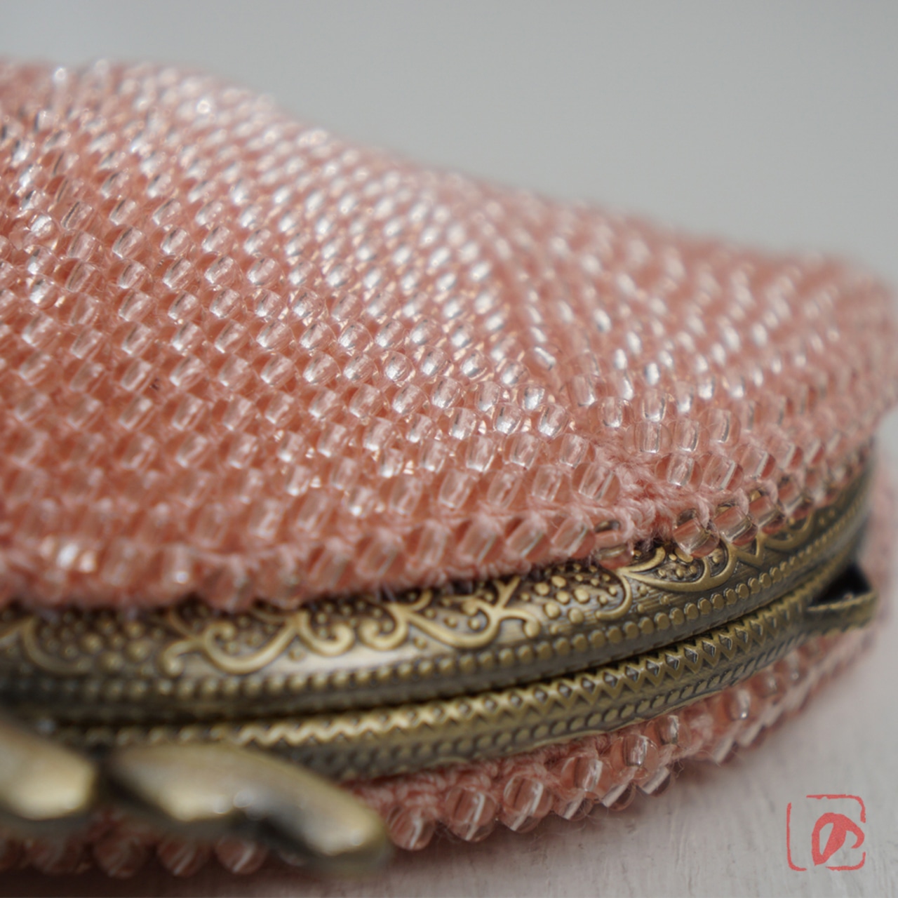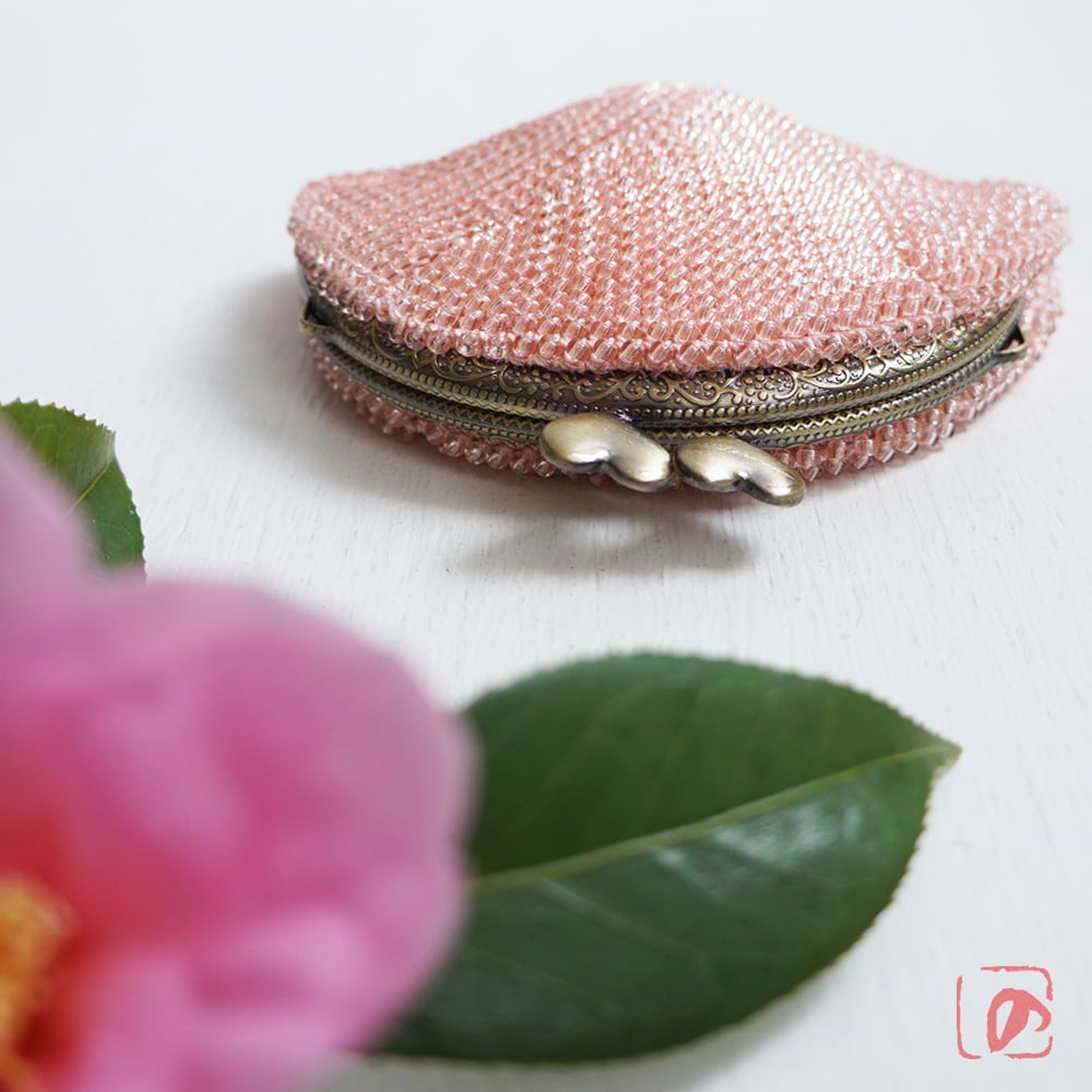 全面に丸大相当2.5mmのガラスビーズを編み込んで制作しました。