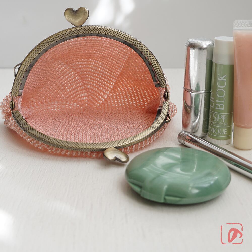 口金 : アンティークゴールド、ハートつまみ、10.5cm、丸型、両カン