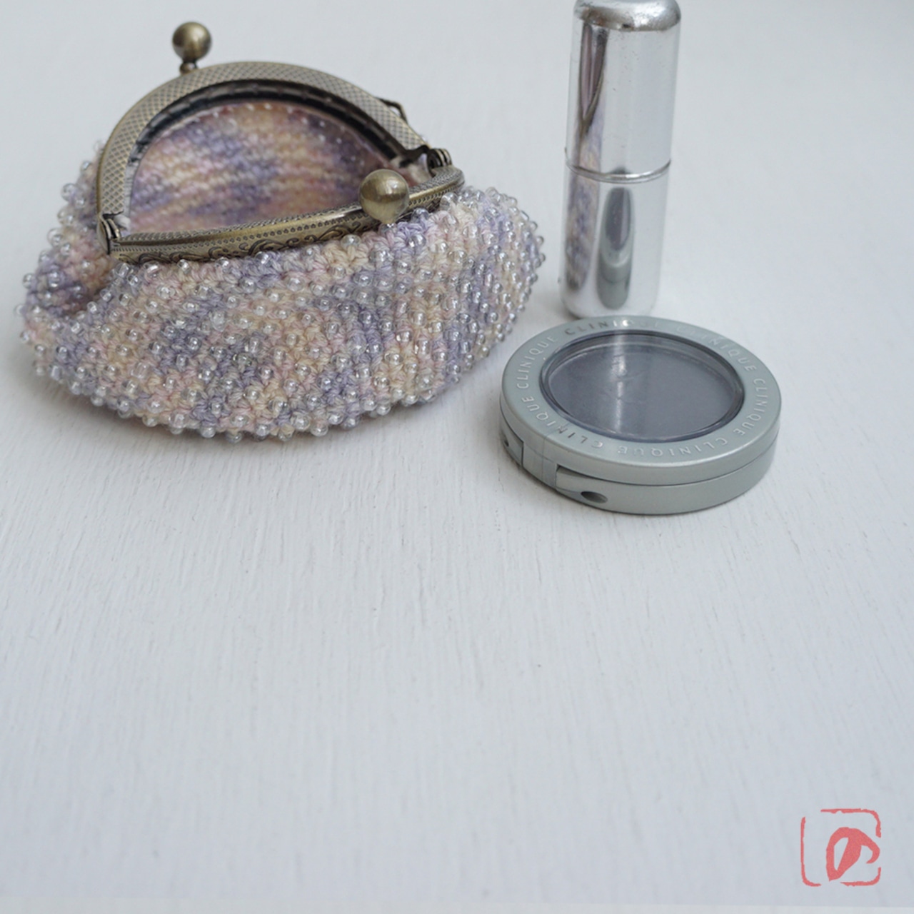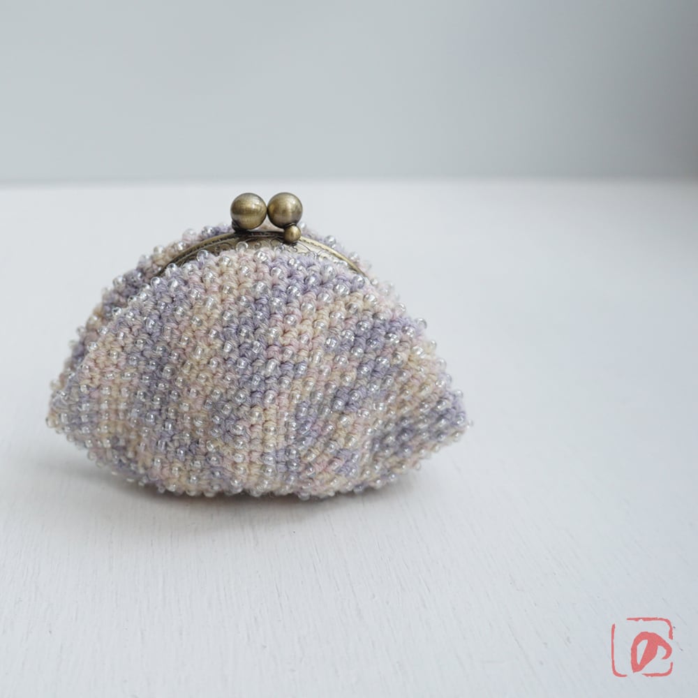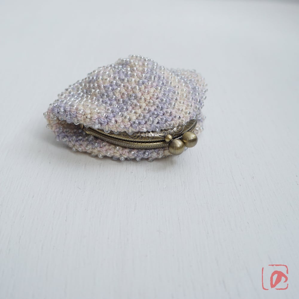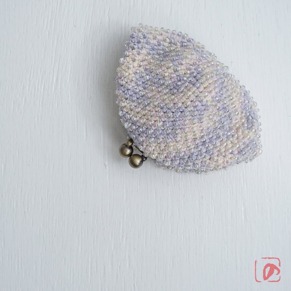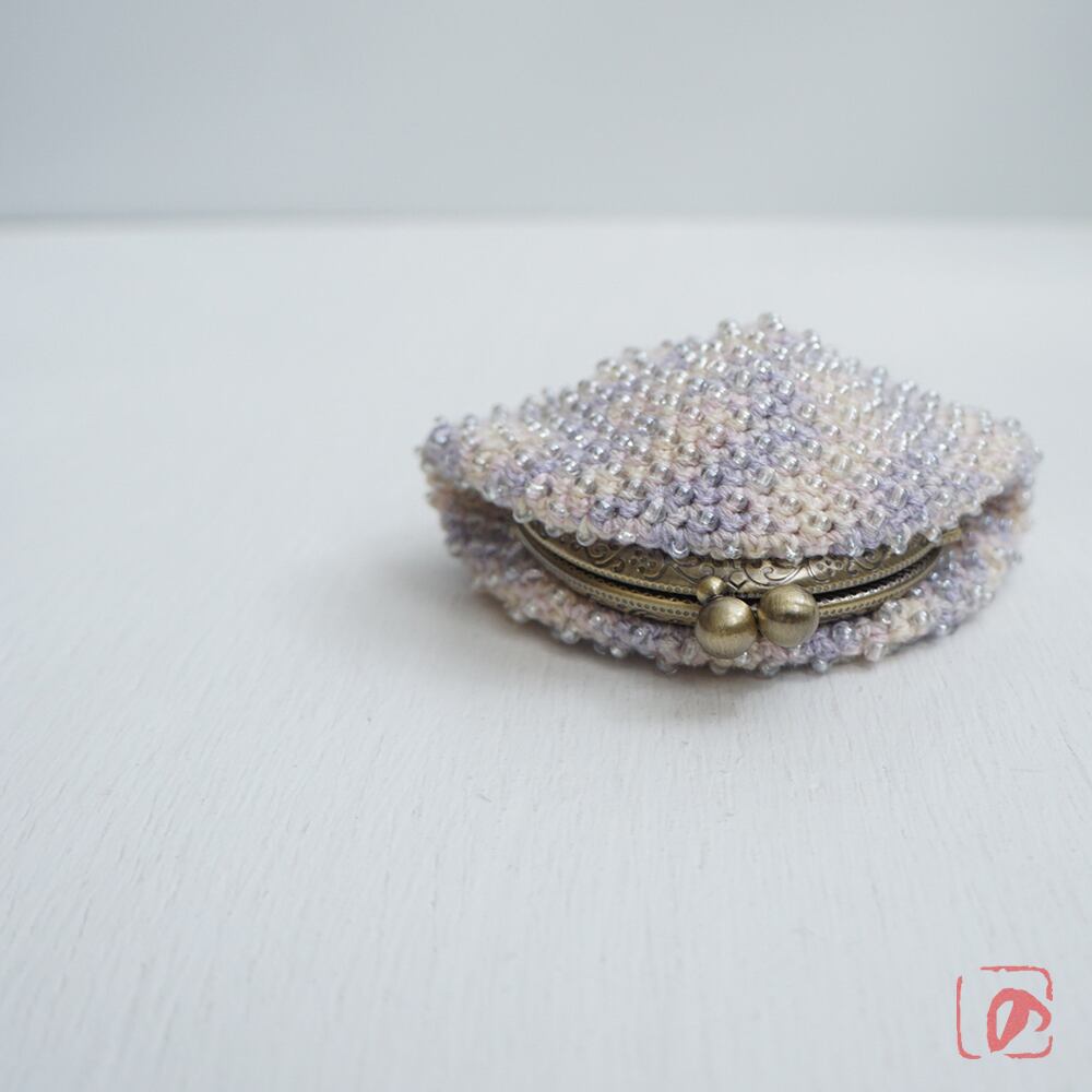 一目飛ばしにビーズを編み込んだ、つぶつぶ感がカワイイがま口。