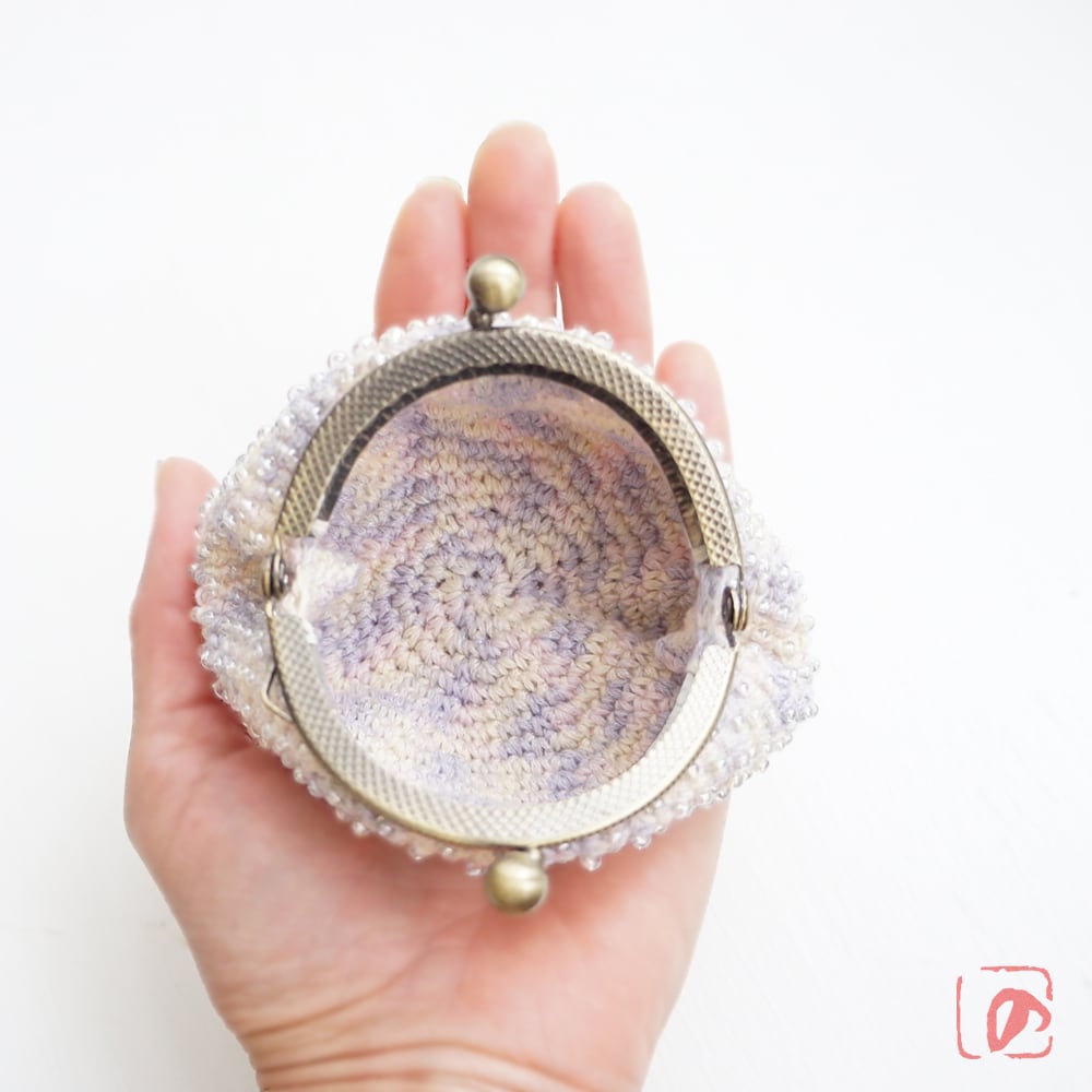 編みがま口×ビーズがま口のハイブリットつぶつぶビーズがま口です。