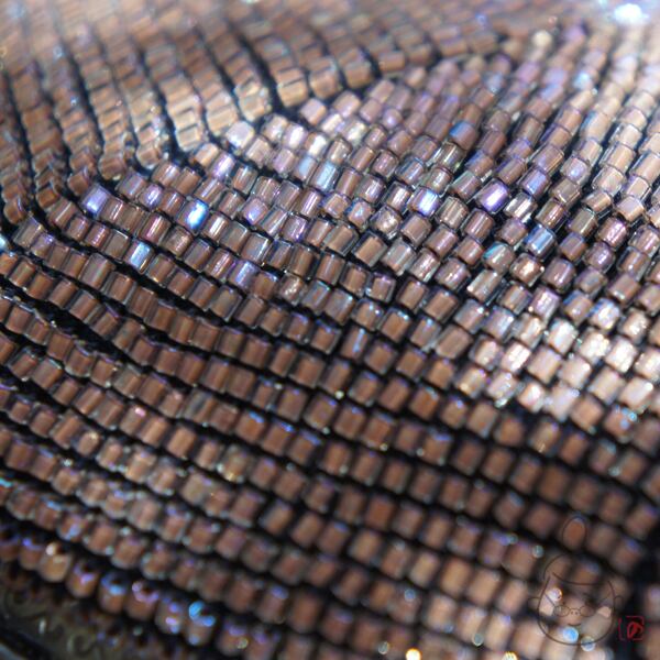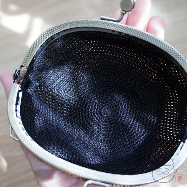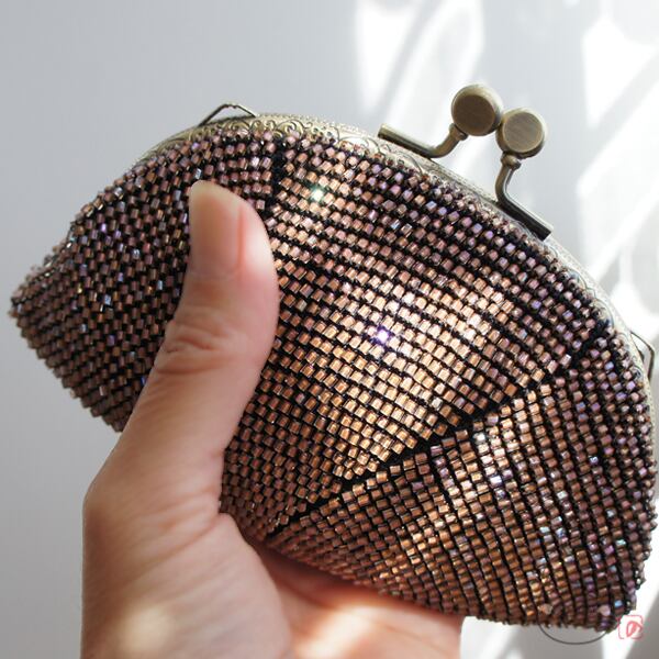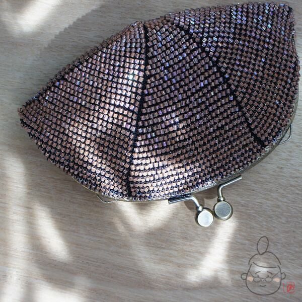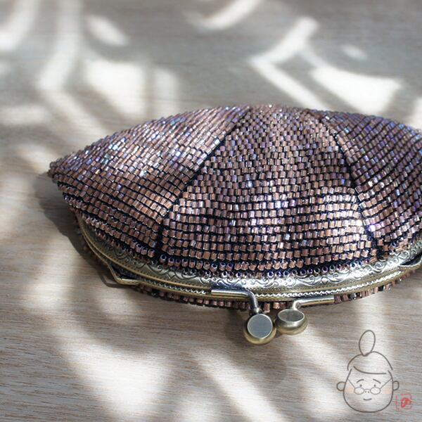ベージュの日本製竹ビーズをひとつぶづつ編み込んだ、上質ながま口です。