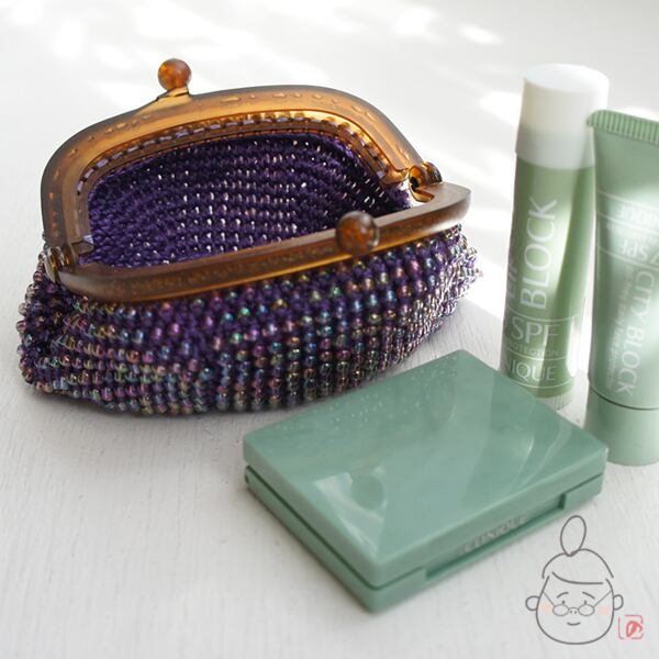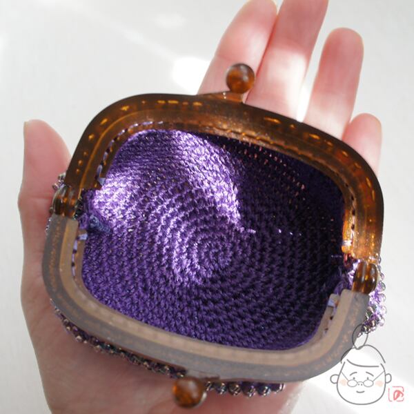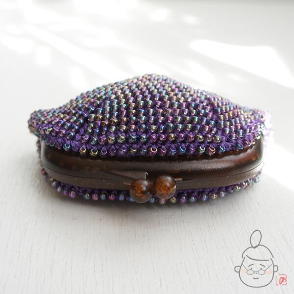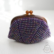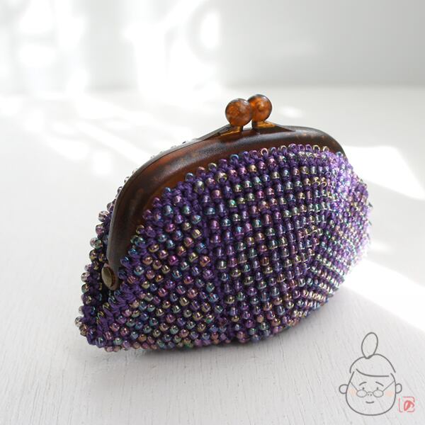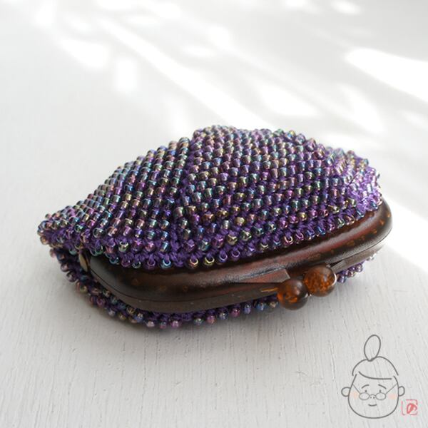 3mmのガラスビーズをひとつぶづつ編み込んだがま口です。