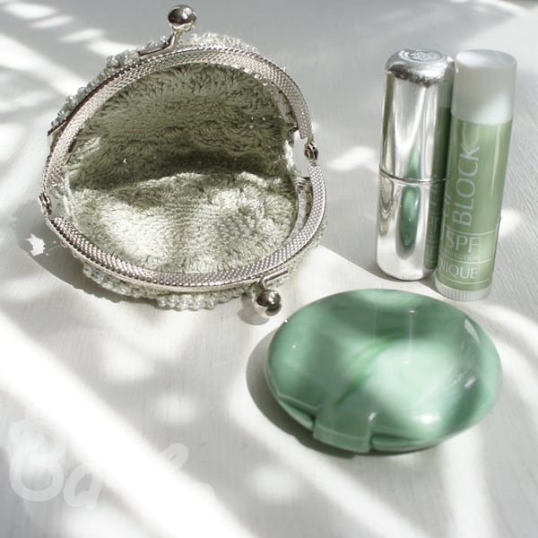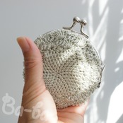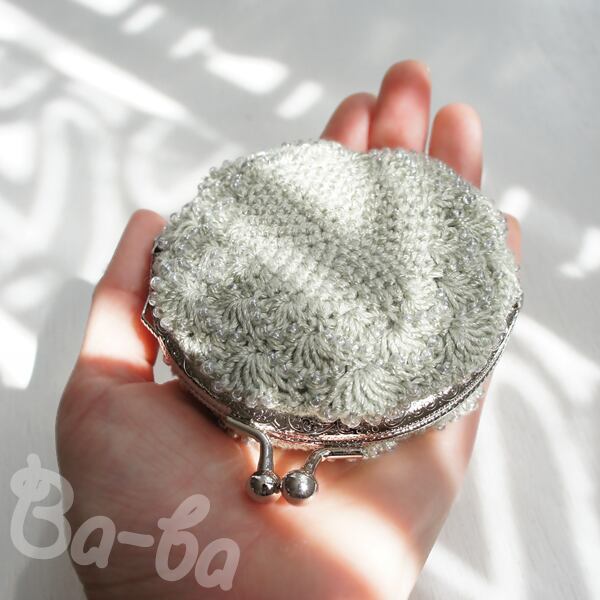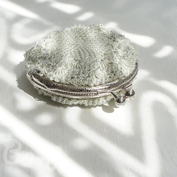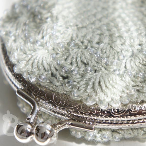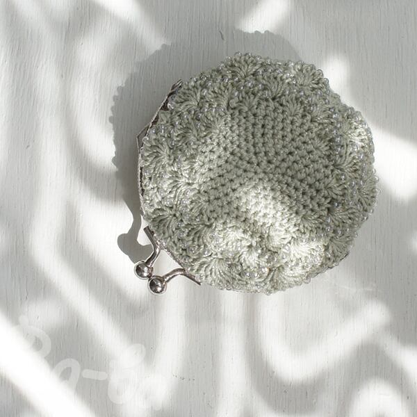 NEW♪ばあば作、ビーズ入り松編み・まるがま口(レモングラス・C1182)