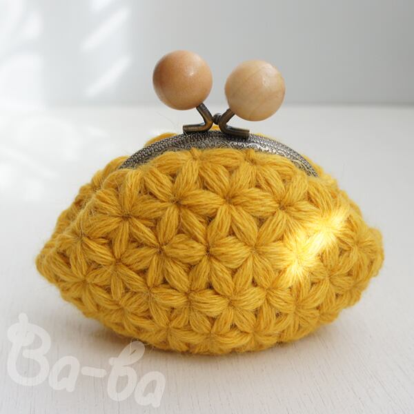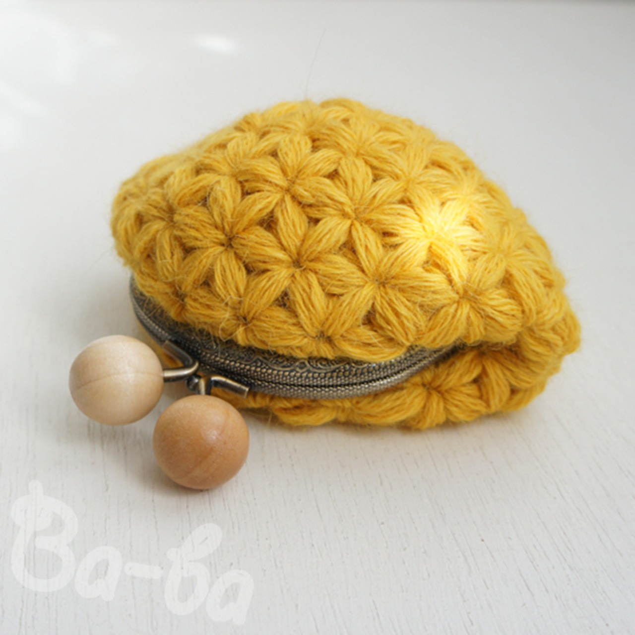 ばあば作♪リフ編みふわっとがま口(karashi・C1204)