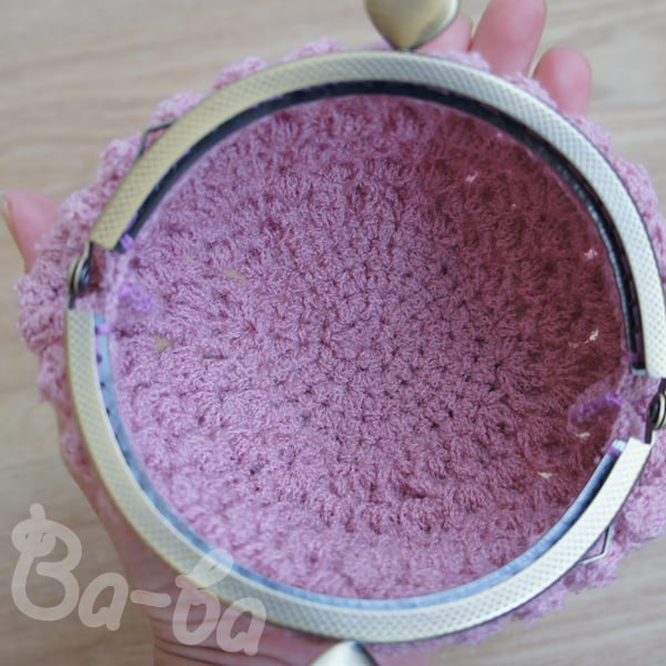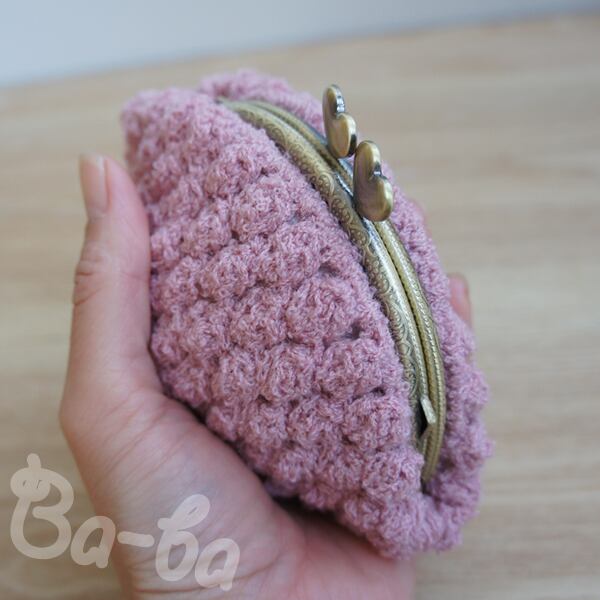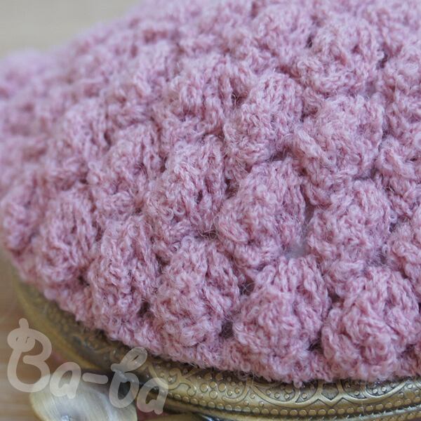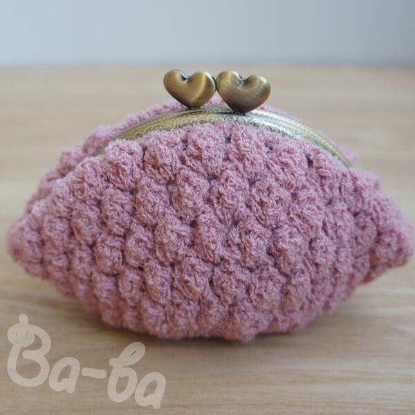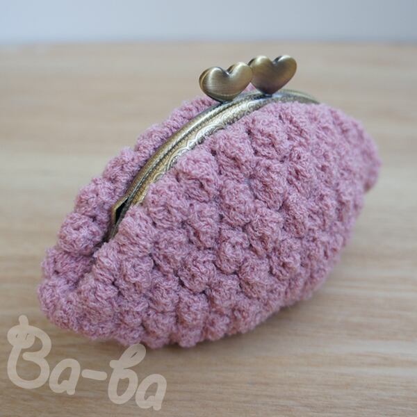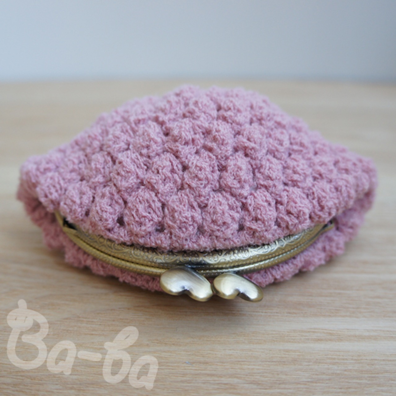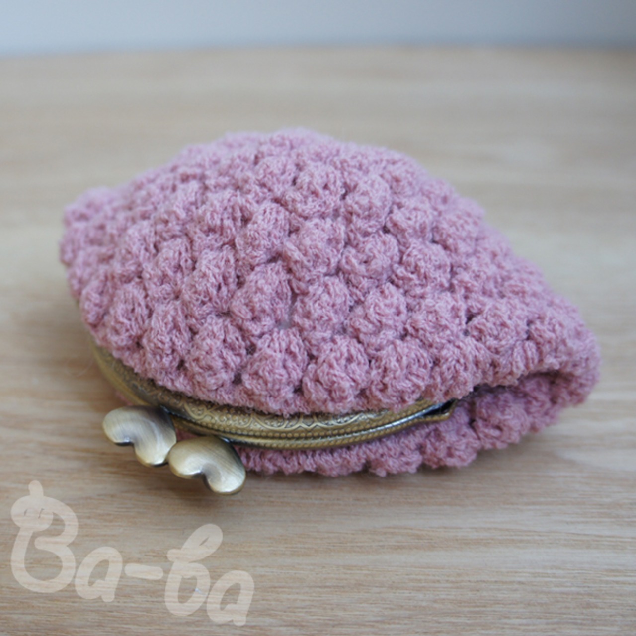 ばあば作、パプコーン編みの大きめがま口(pinkbouclet・C1193)