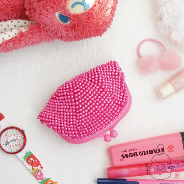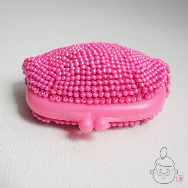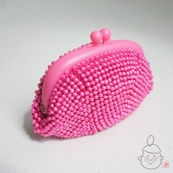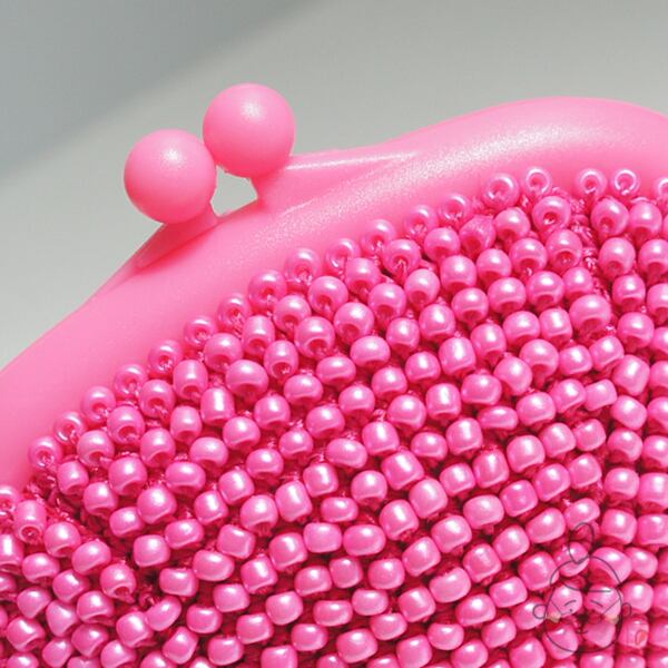 3mmのガラスビーズをひとつぶづつ編み込んだがま口です。