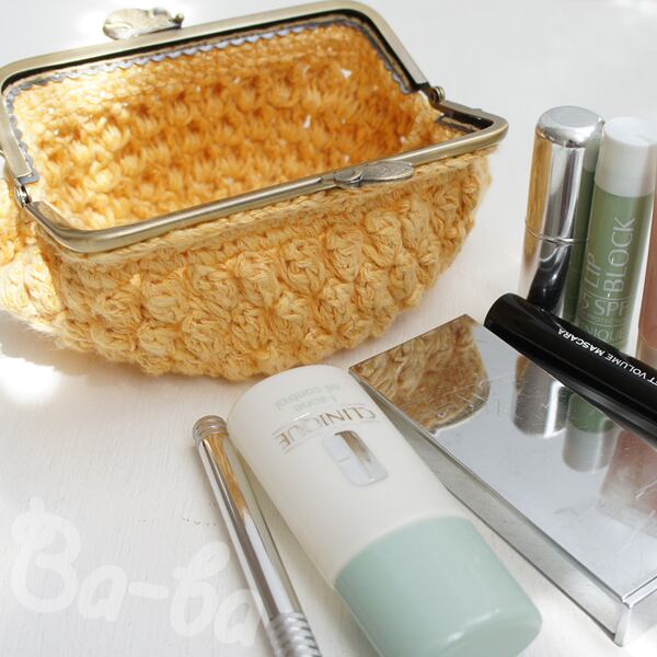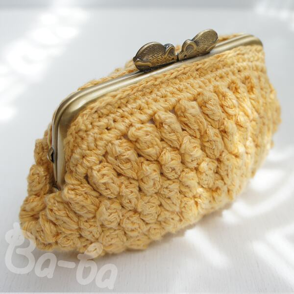 パプコーン編みを組み合わせて「ハッピーがま口♪」に仕上げてみました。