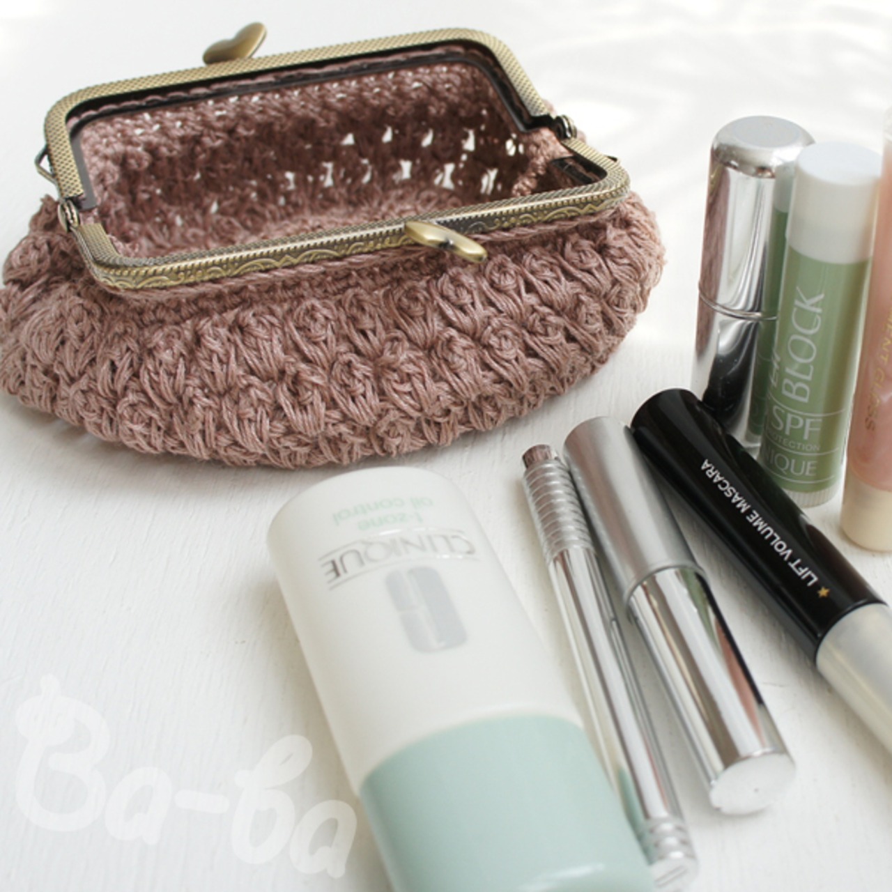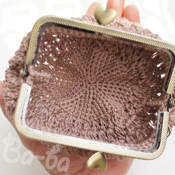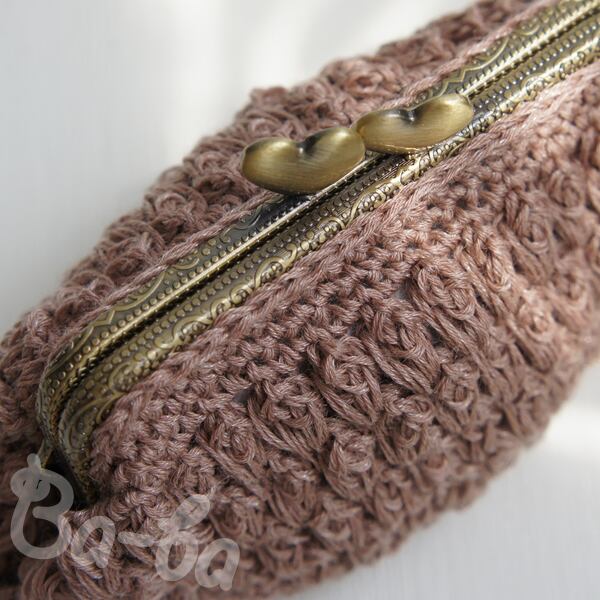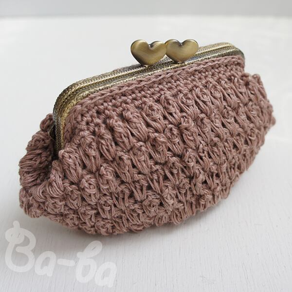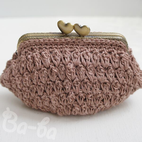 さらっとした麻混紡のコットンサマーヤーンを「パプコーン編み」で編み上げ、がま口に仕上げました。