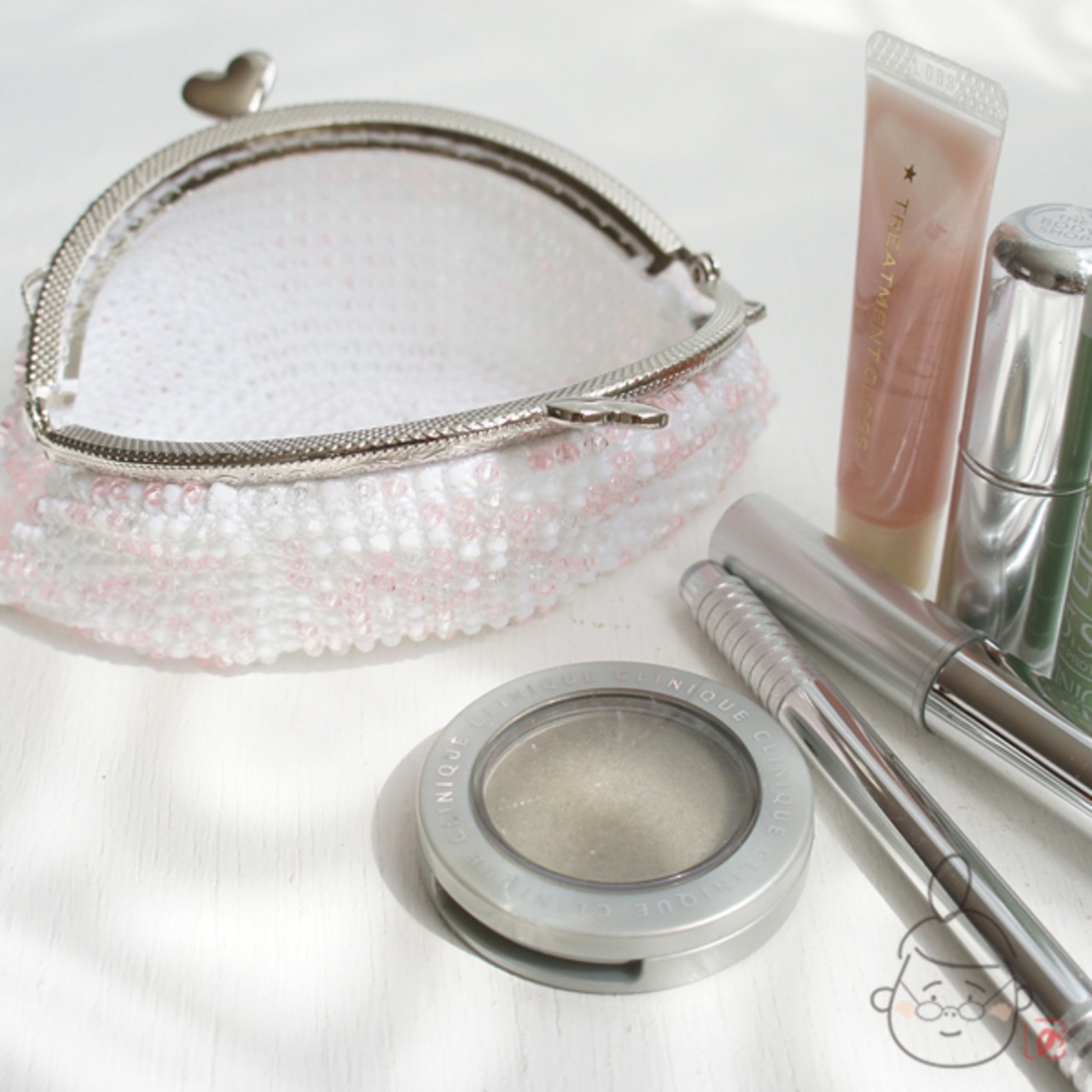 ビーズ : アクリルビーズ・3mm・クリア、クリアピンク、白
