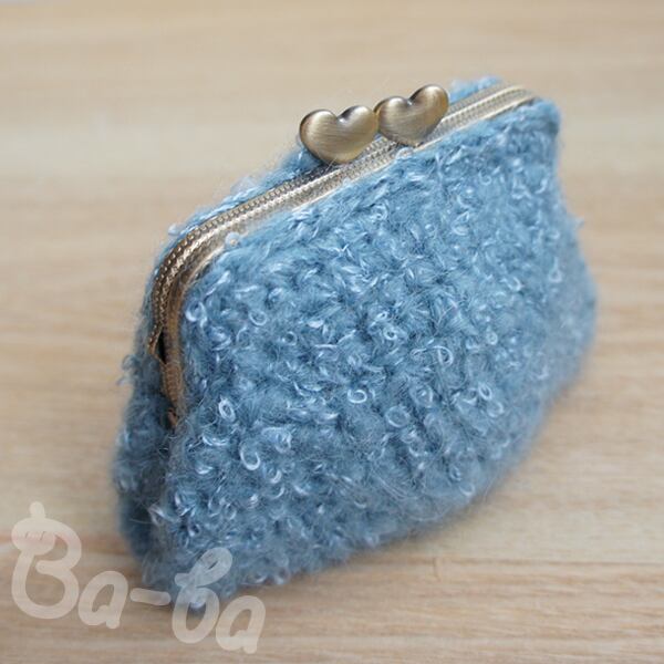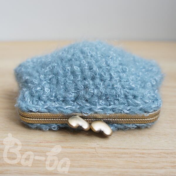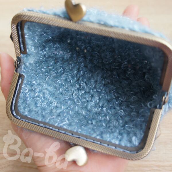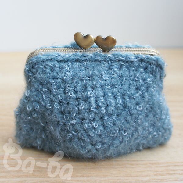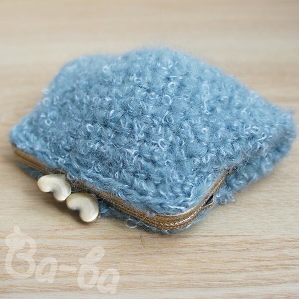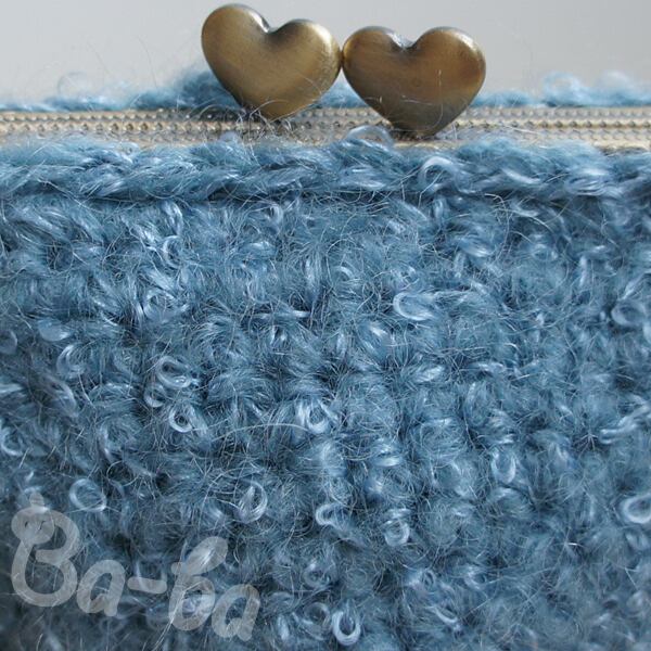 毛足の長いモヘヤループヤーンをシンプルに編み上げた、容量たっぷりの頼もしいがま口です。