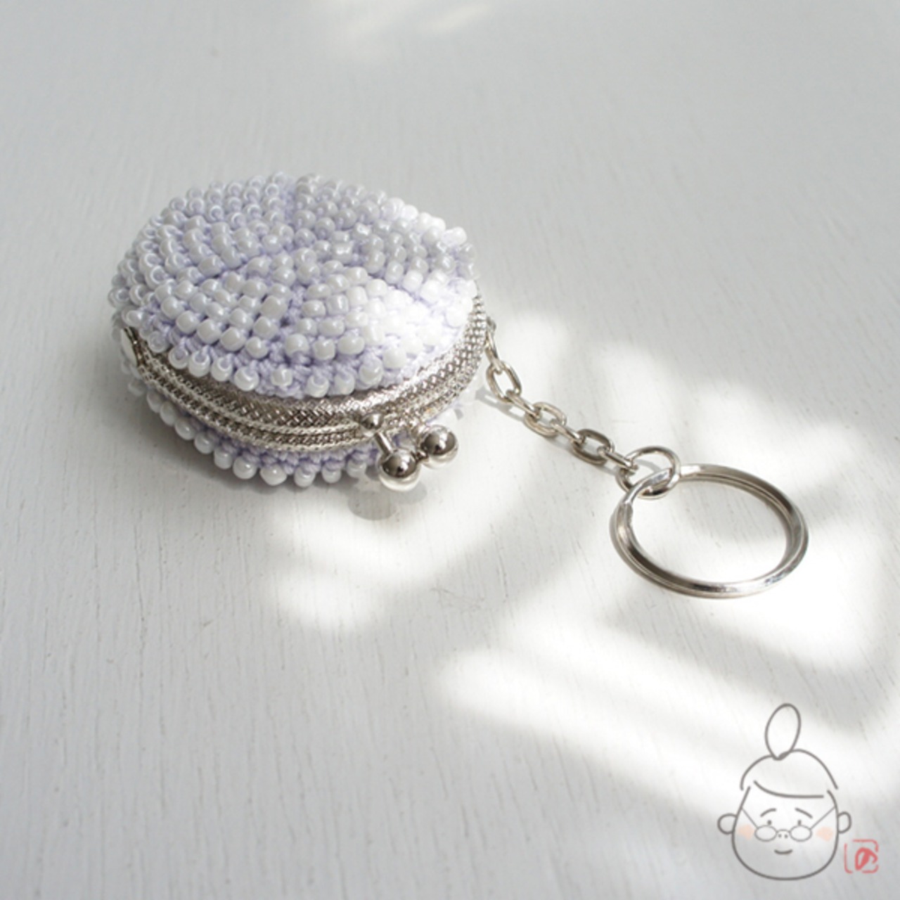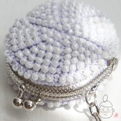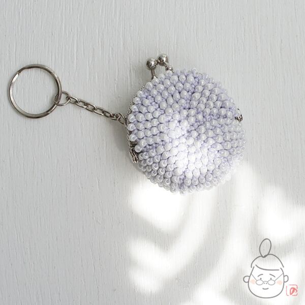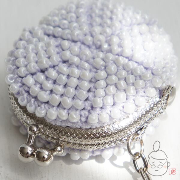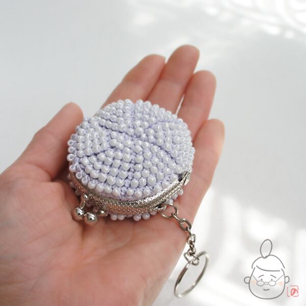 ガラスビーズをひとつぶづつ編み込んだ「ちびまる」がま口です。