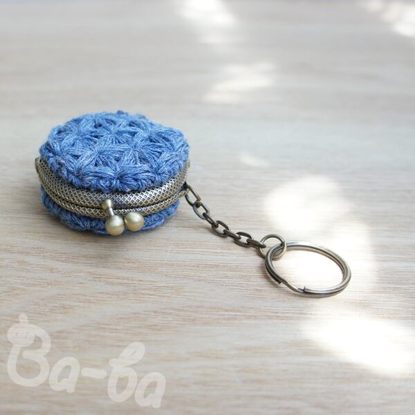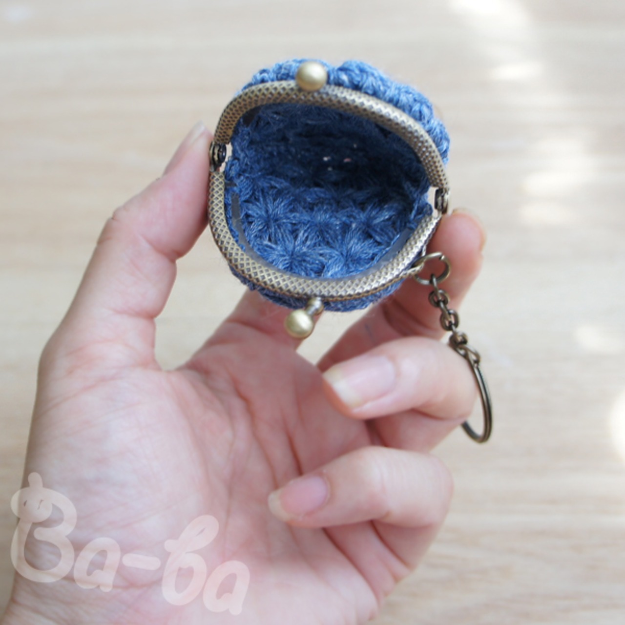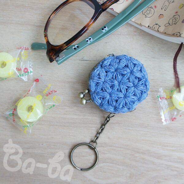 ばあば作♪ふわっとリフ編みミニミニがま口(わすれな草・C1170)