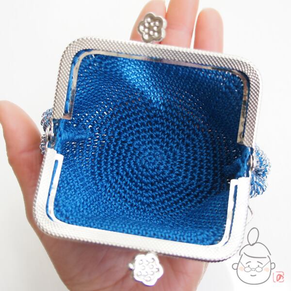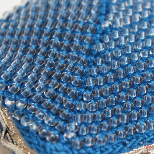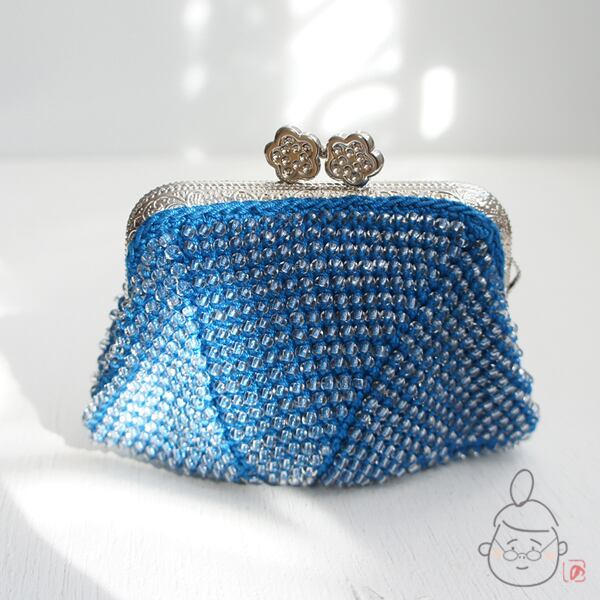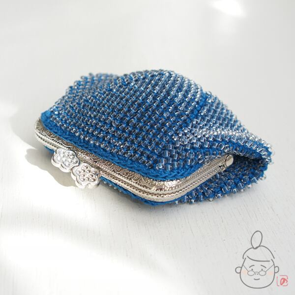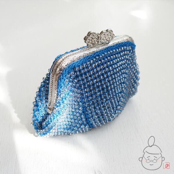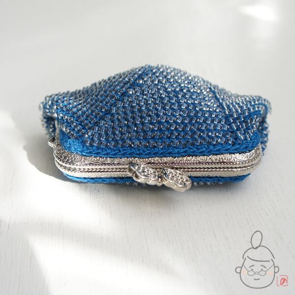 ばあば作☆☆総ガラスビーズのスクエアがま口(americanblue・1006)