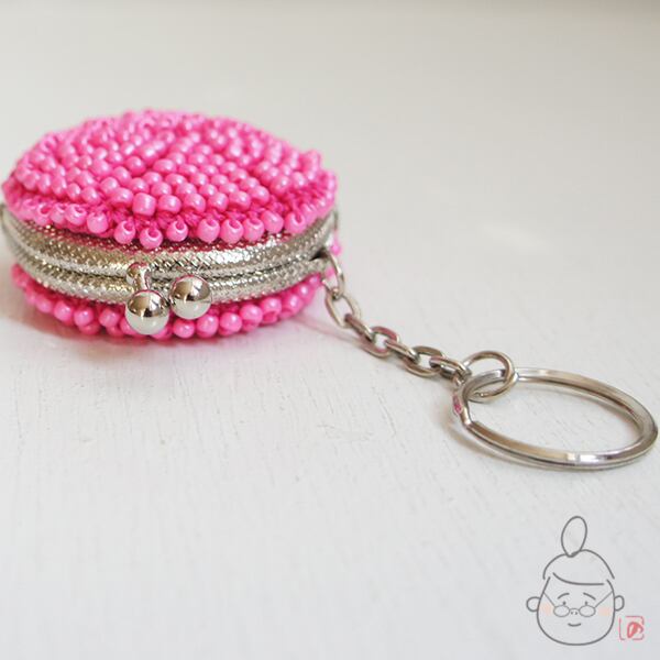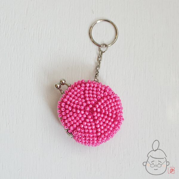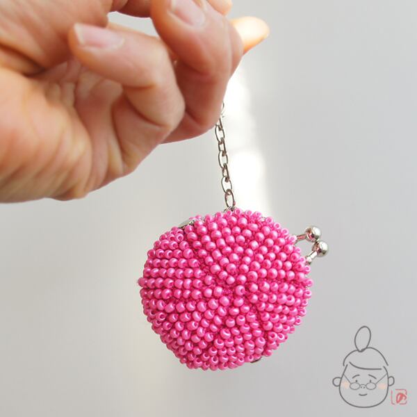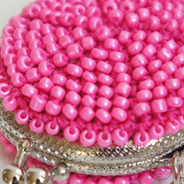 キラキラのガラスビーズをひとつぶづつ編み込んだ「ちびまる」がま口です。