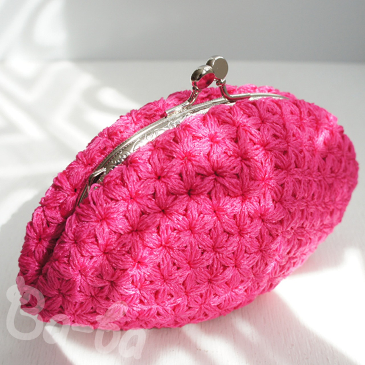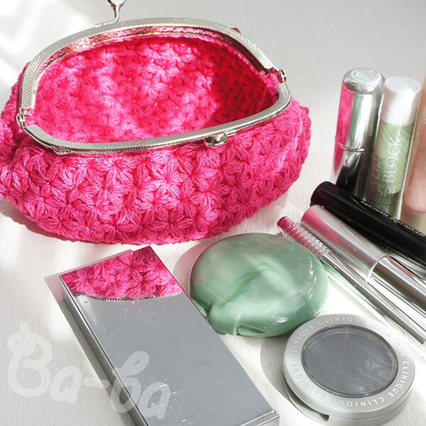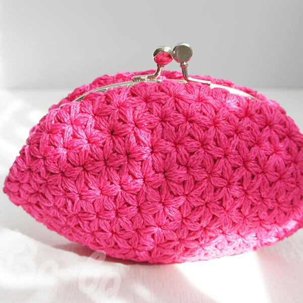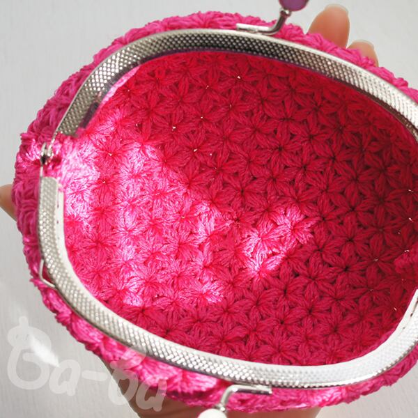 ばあば作♪リフ編みさらに大きめふわっとがま口(pinkpink・C1231)