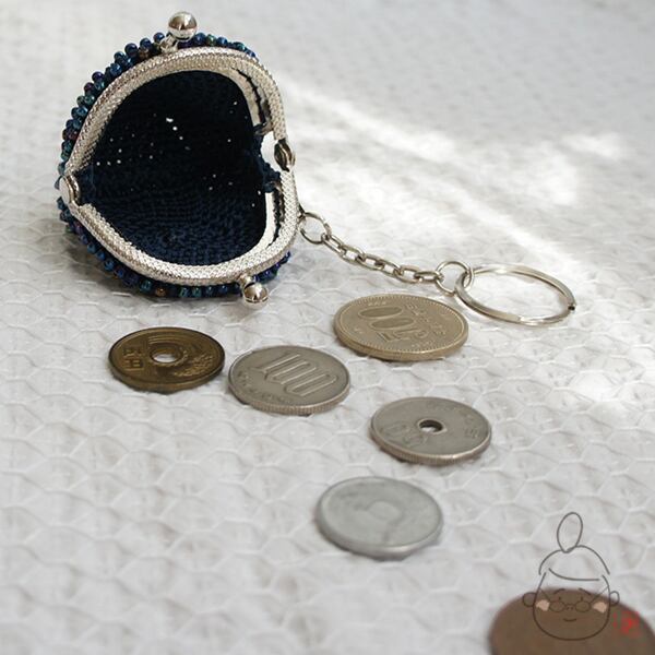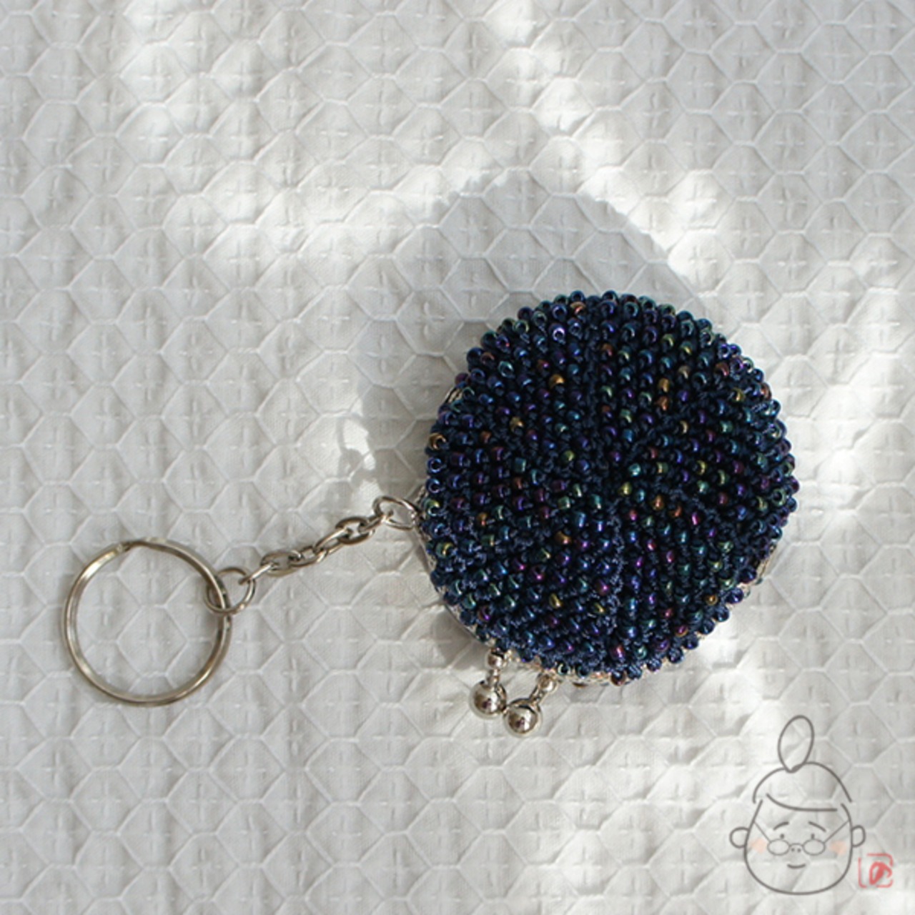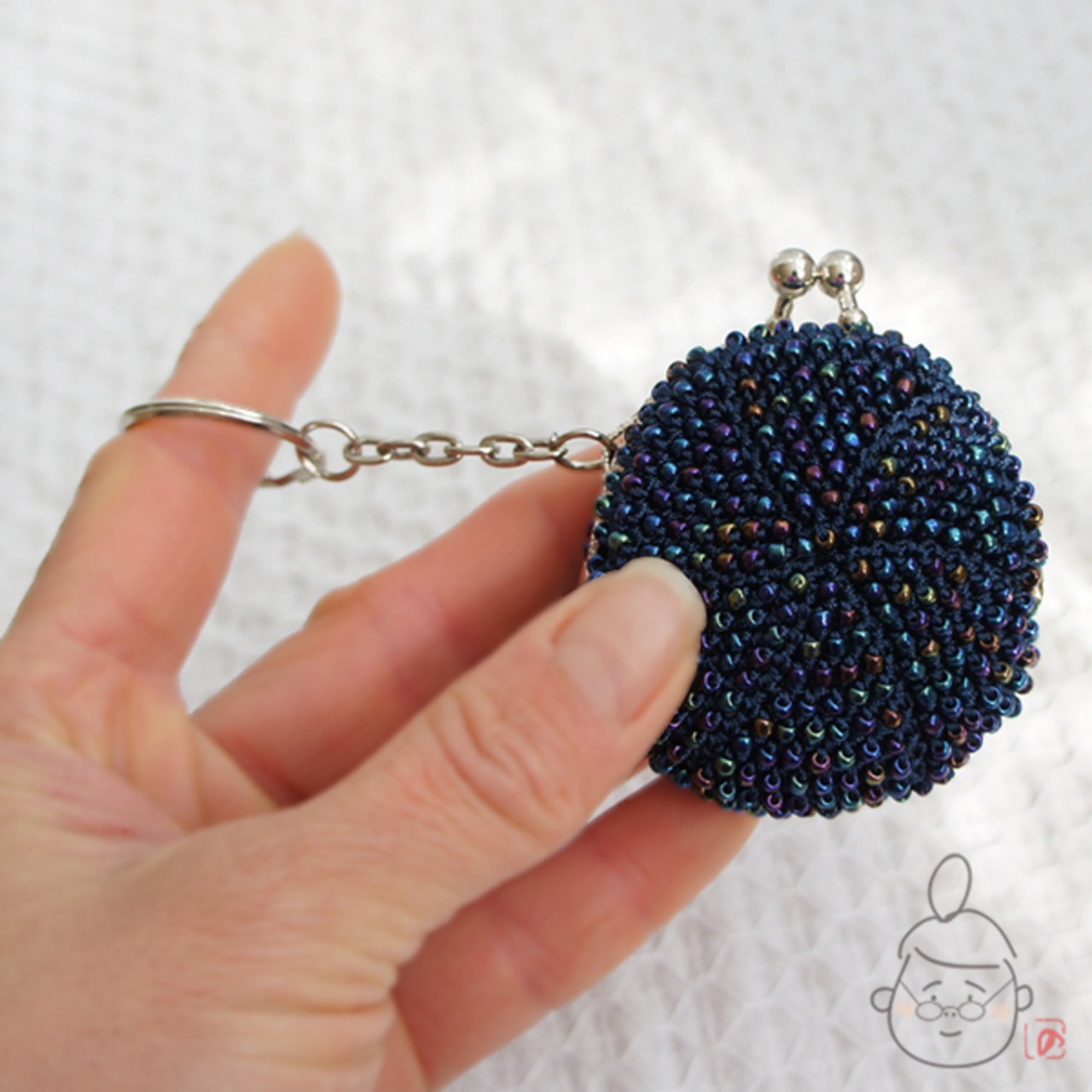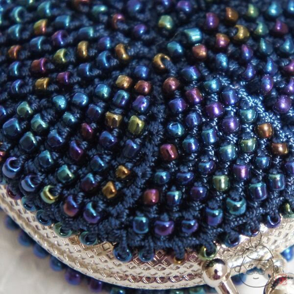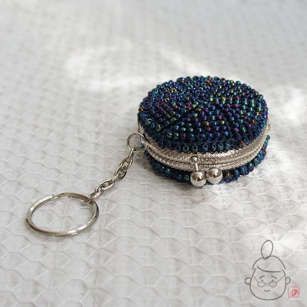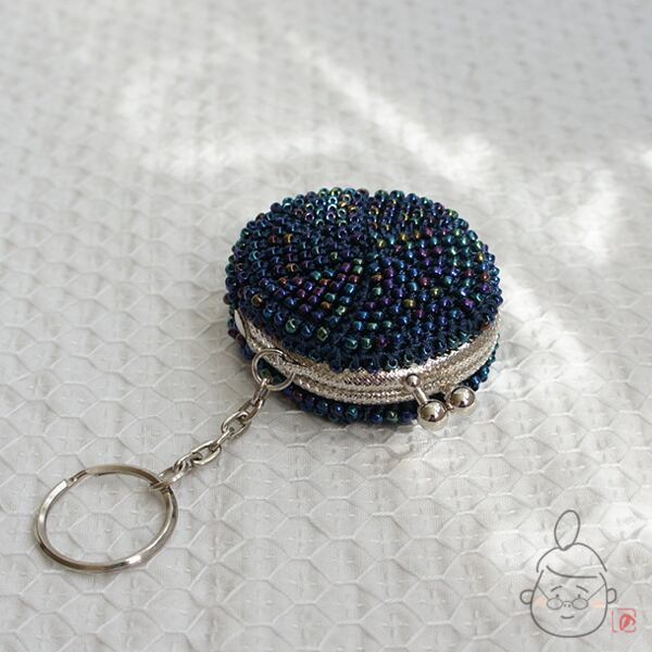 2mmのシードビーズをひとつぶづつ編み込んだ「ちびまる」がま口です。