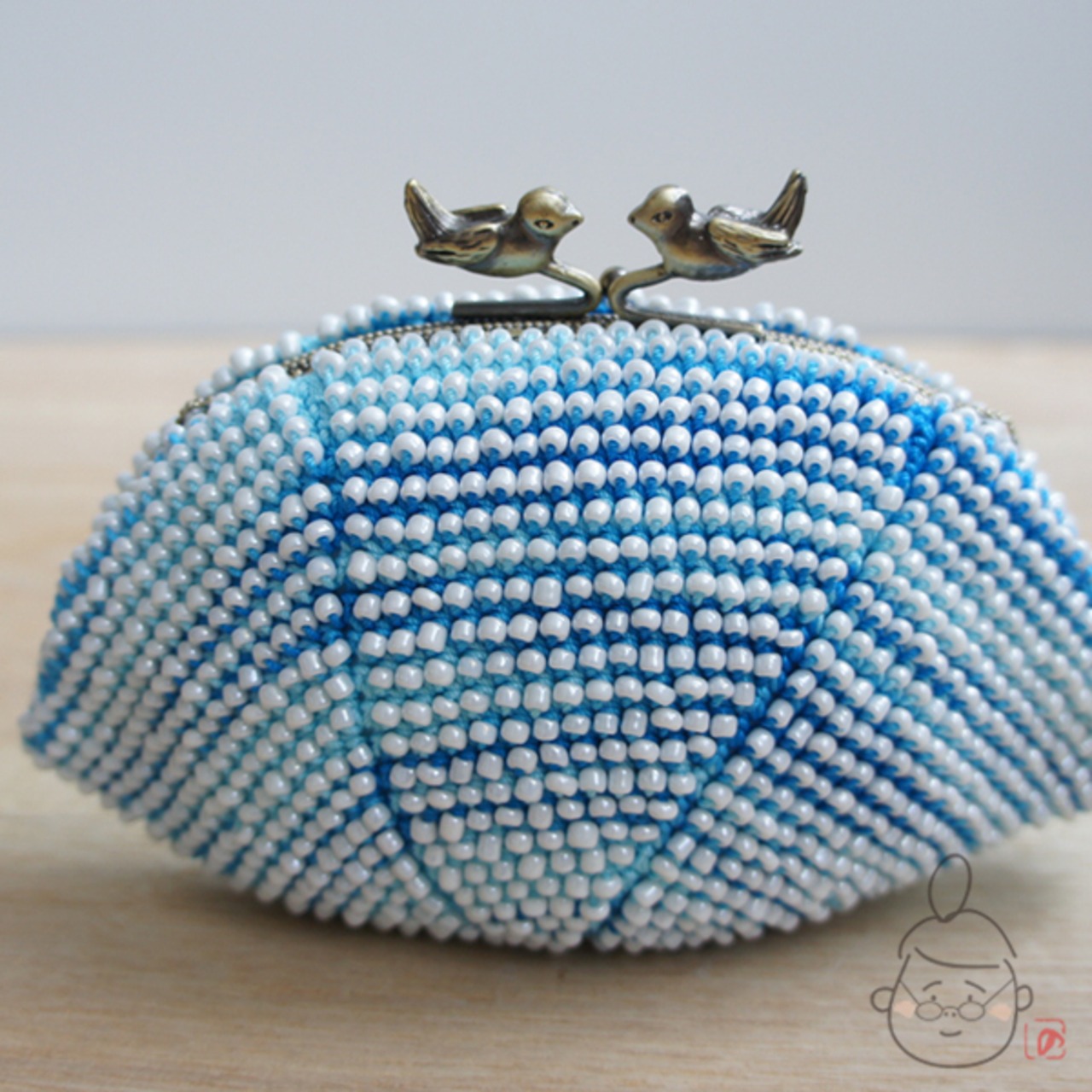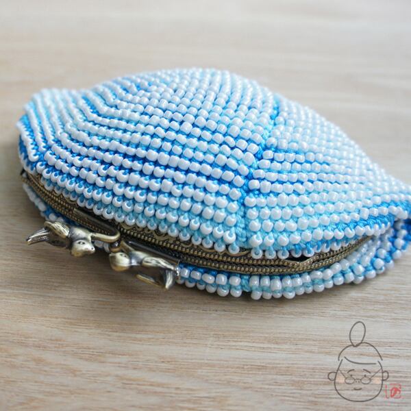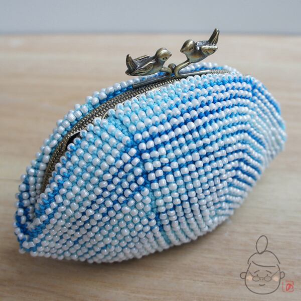 ばあば作☆☆さらに大きめビーズのがま口 (seablue・898)