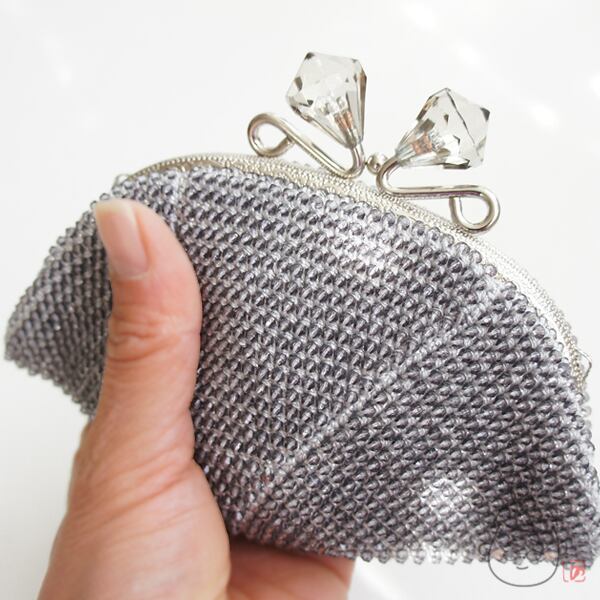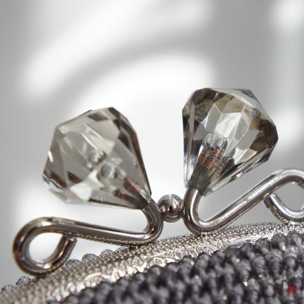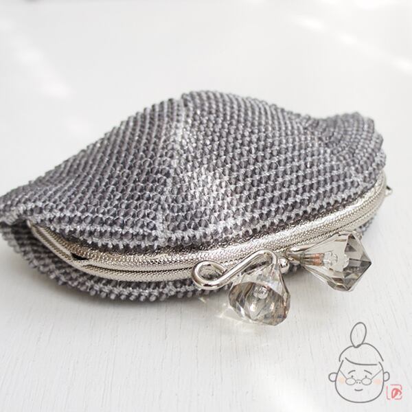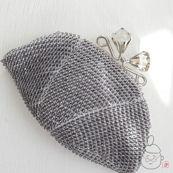 ばあば作♪アクリルビーズのさらに大きめがま口(silver・1014)
