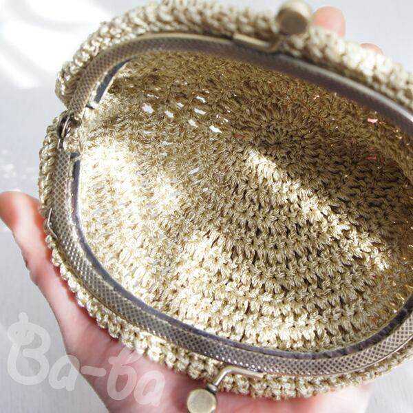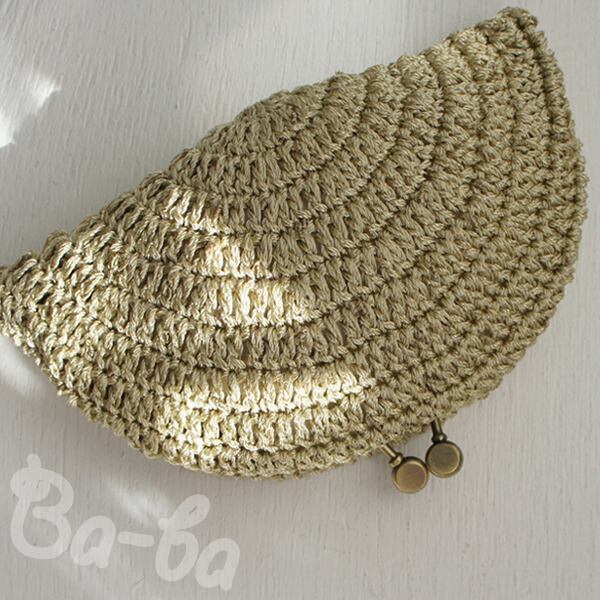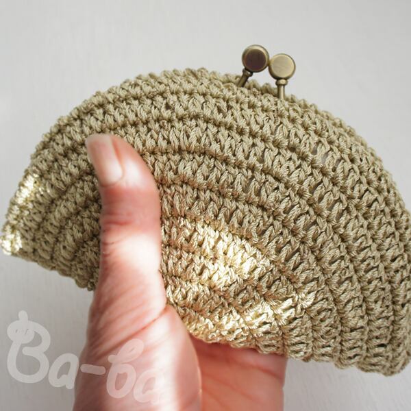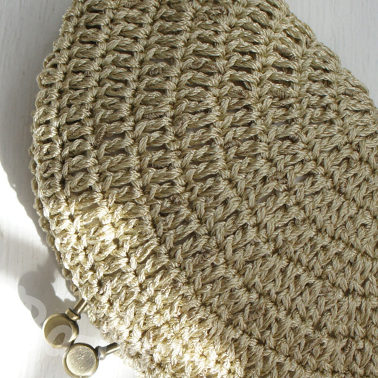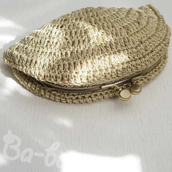 ばあば作☆さらに大きめ長編みがま口(ツヤベージュ・C1224)