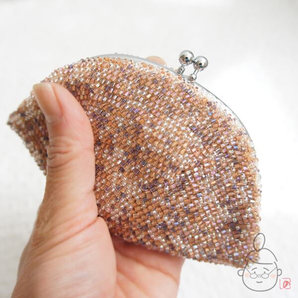 ばあば作♪シードビーズのがま口 (シャイニーベージュ・425)
