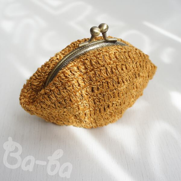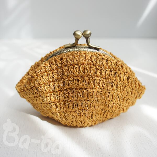 手のひらになじむ柔らかい長編みの編み地を、がま口に仕上げました。