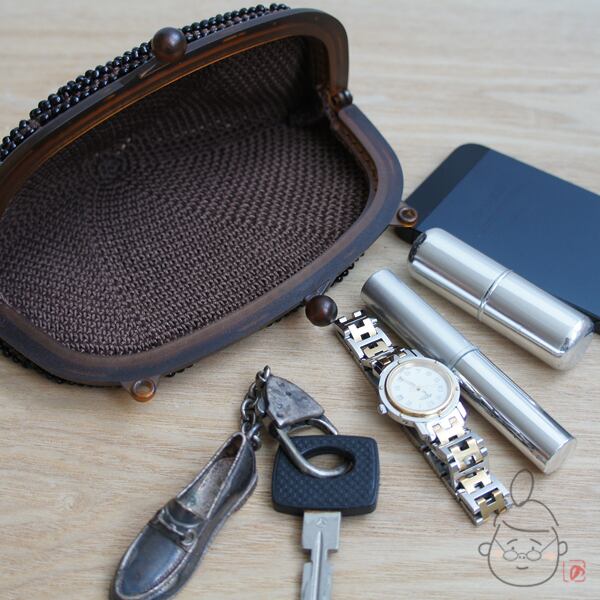 幅16cmのプラ口金を使い、収納力も余裕あり。