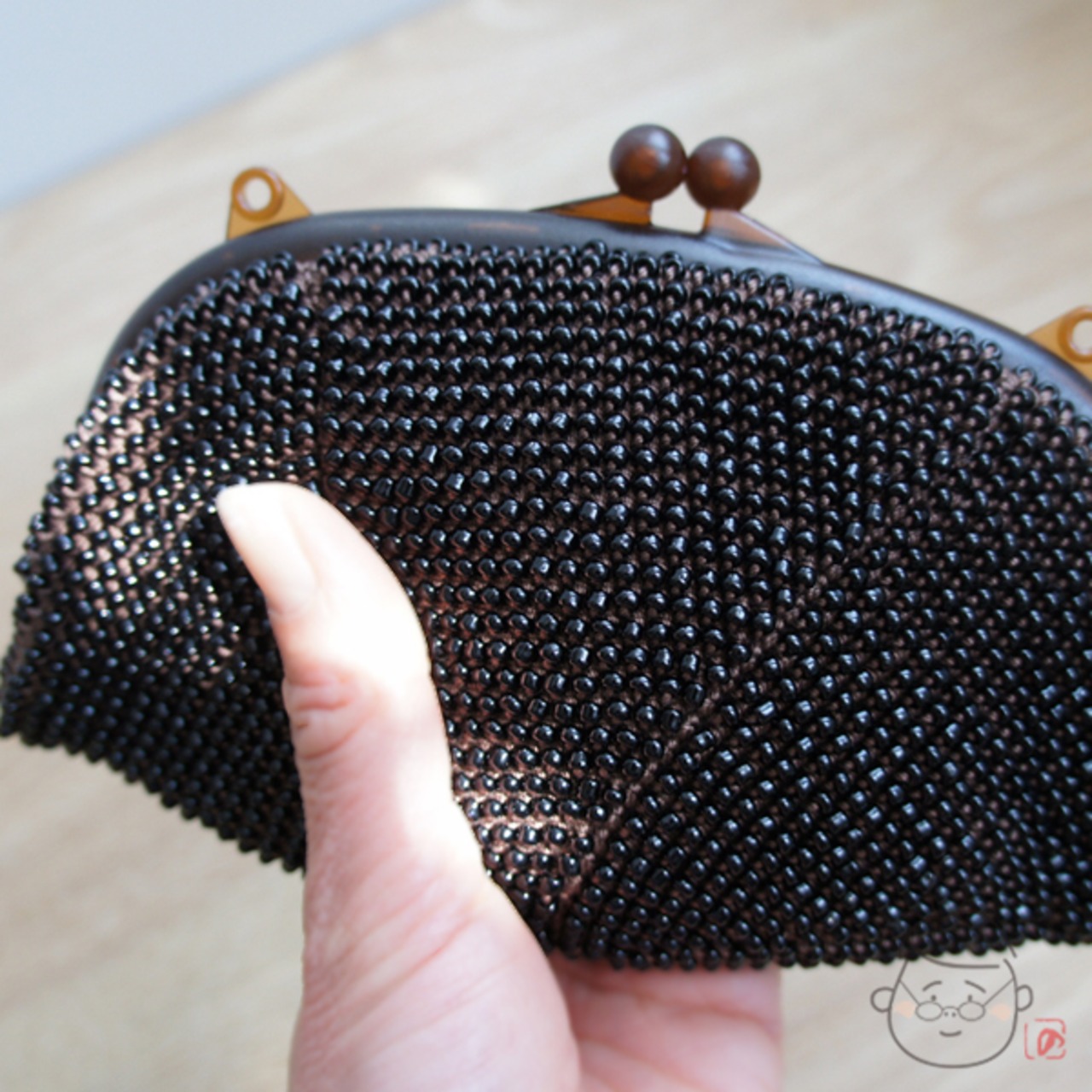 全面にガラスビーズを編み込んでプチバッグを制作しました。