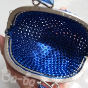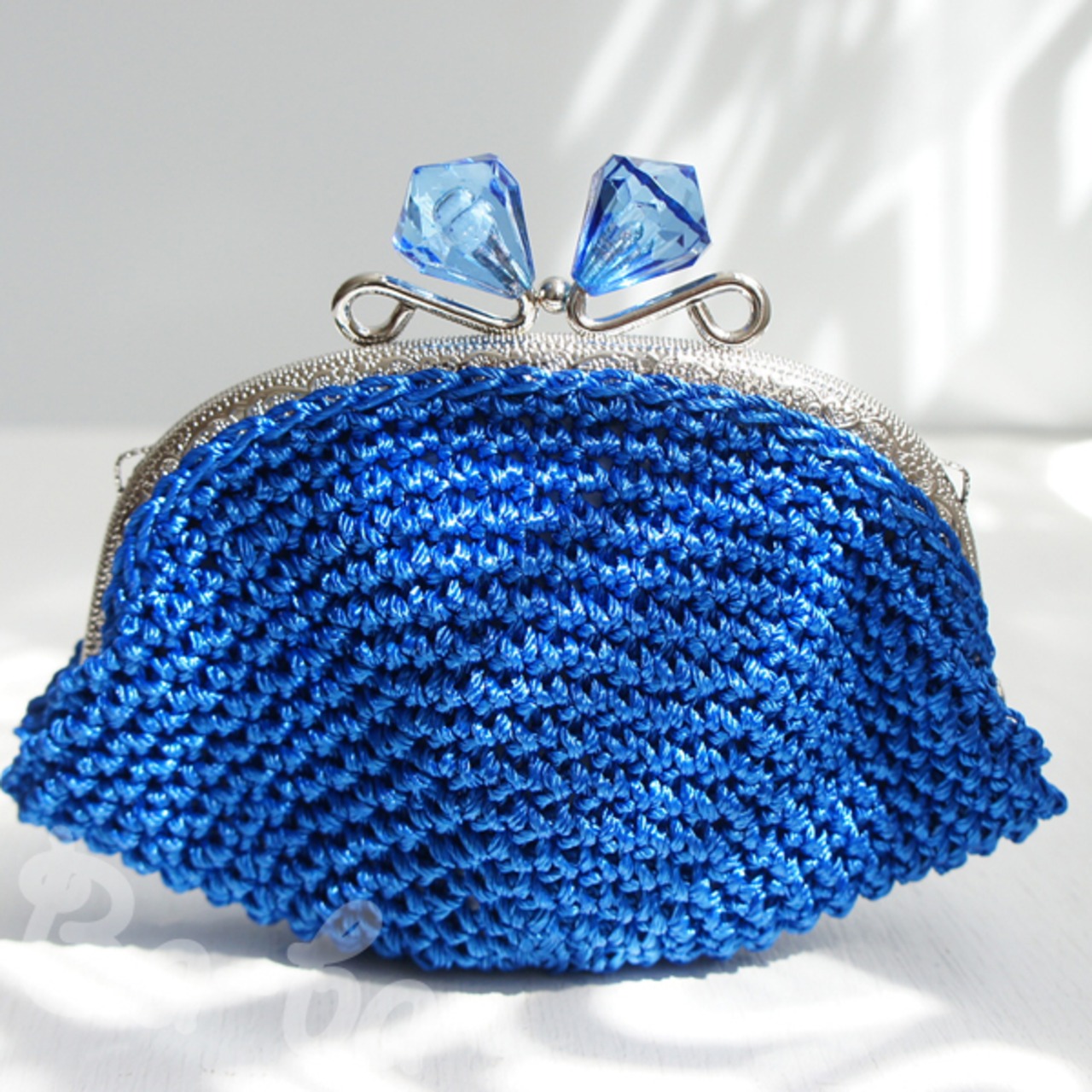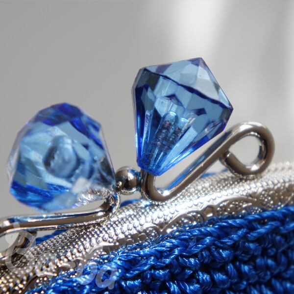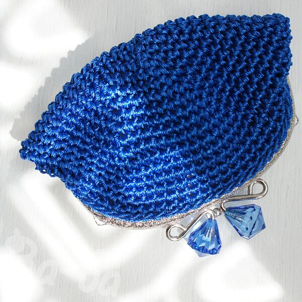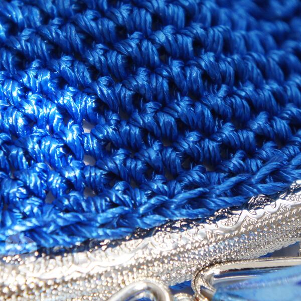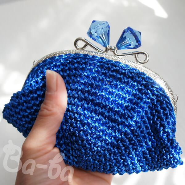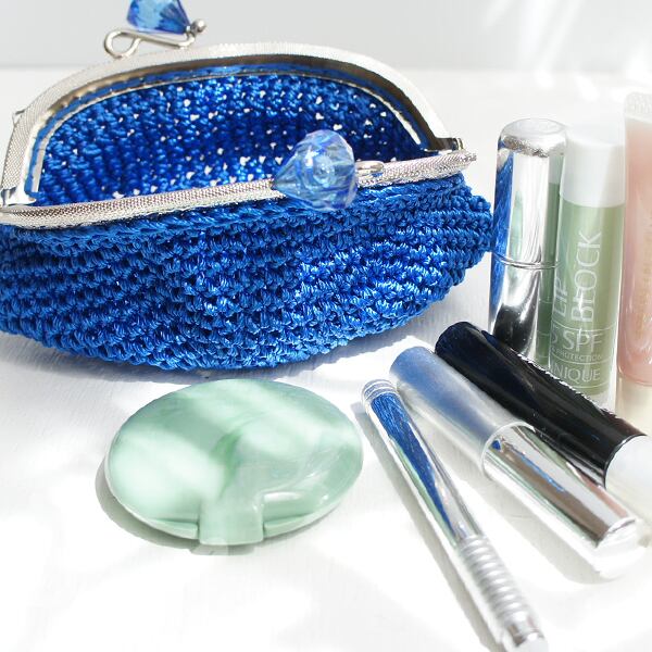 発色がよくハリのある糸をこま編みにし、色を合わせたつまみの口金をつけました。
