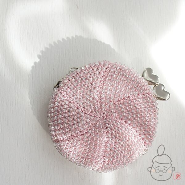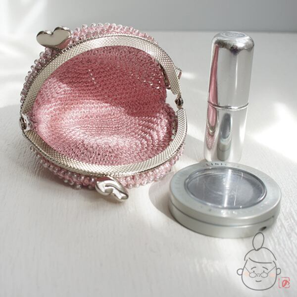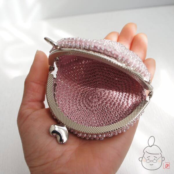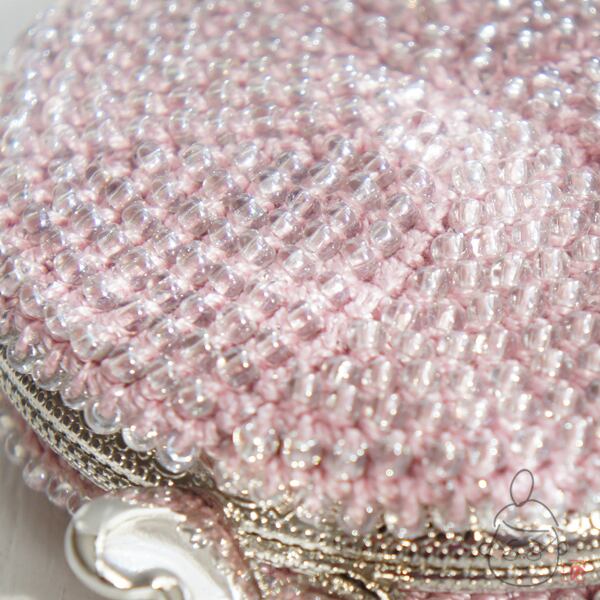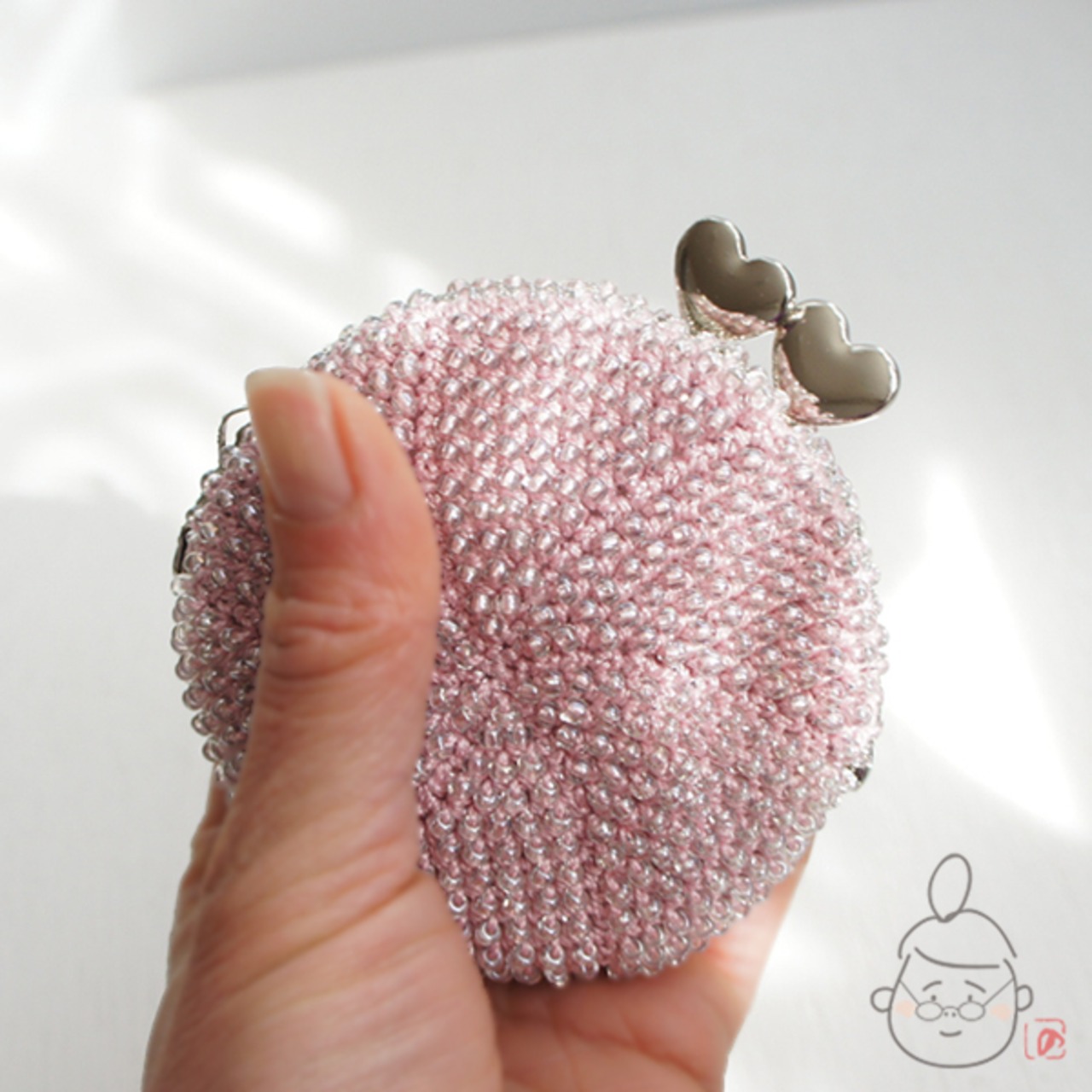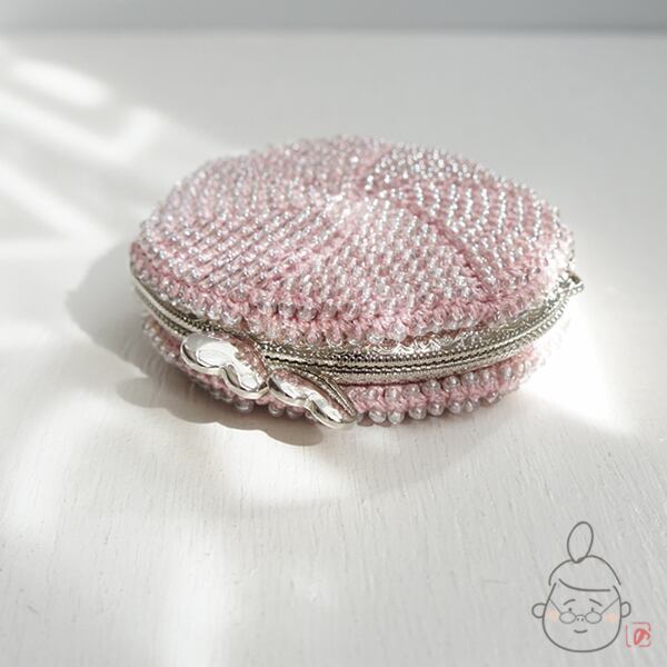 ばあば作♥ガラスビーズのまんまるがま口(palepink・1034)