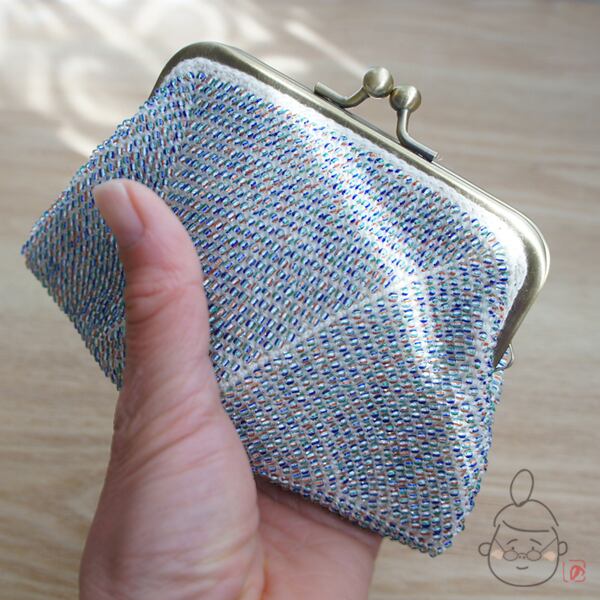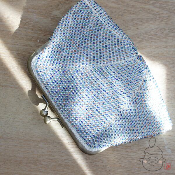 2mmのシードビーズをひとつぶづつ全面に編み込んだ、上質ながま口です。
