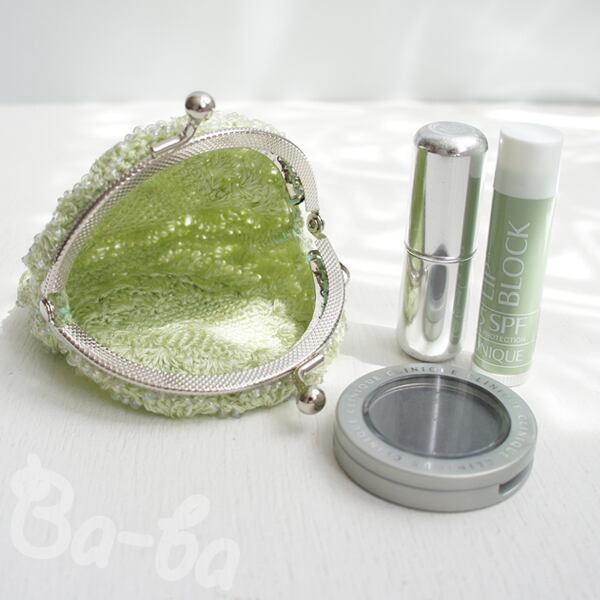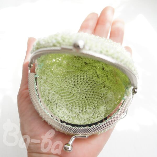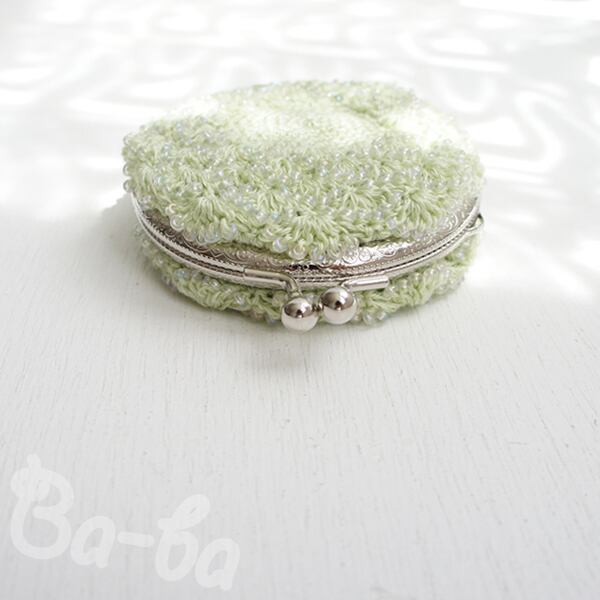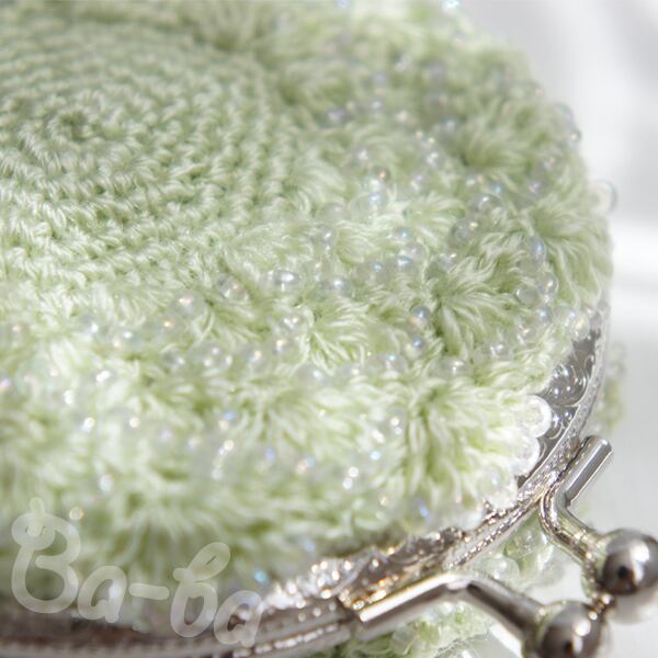 ばあば作、ビーズ入り松編み・まるまるがま口(lime・C1259)