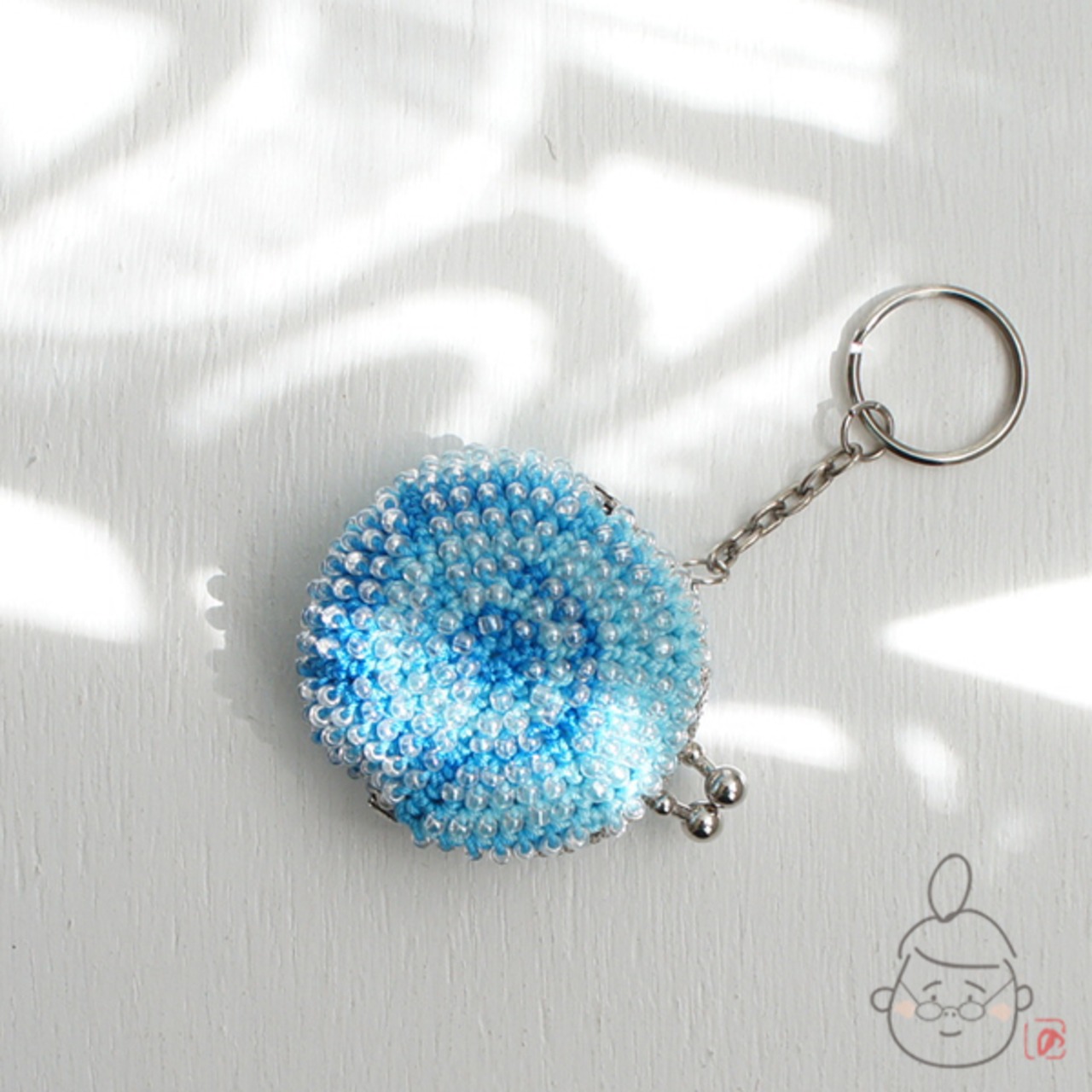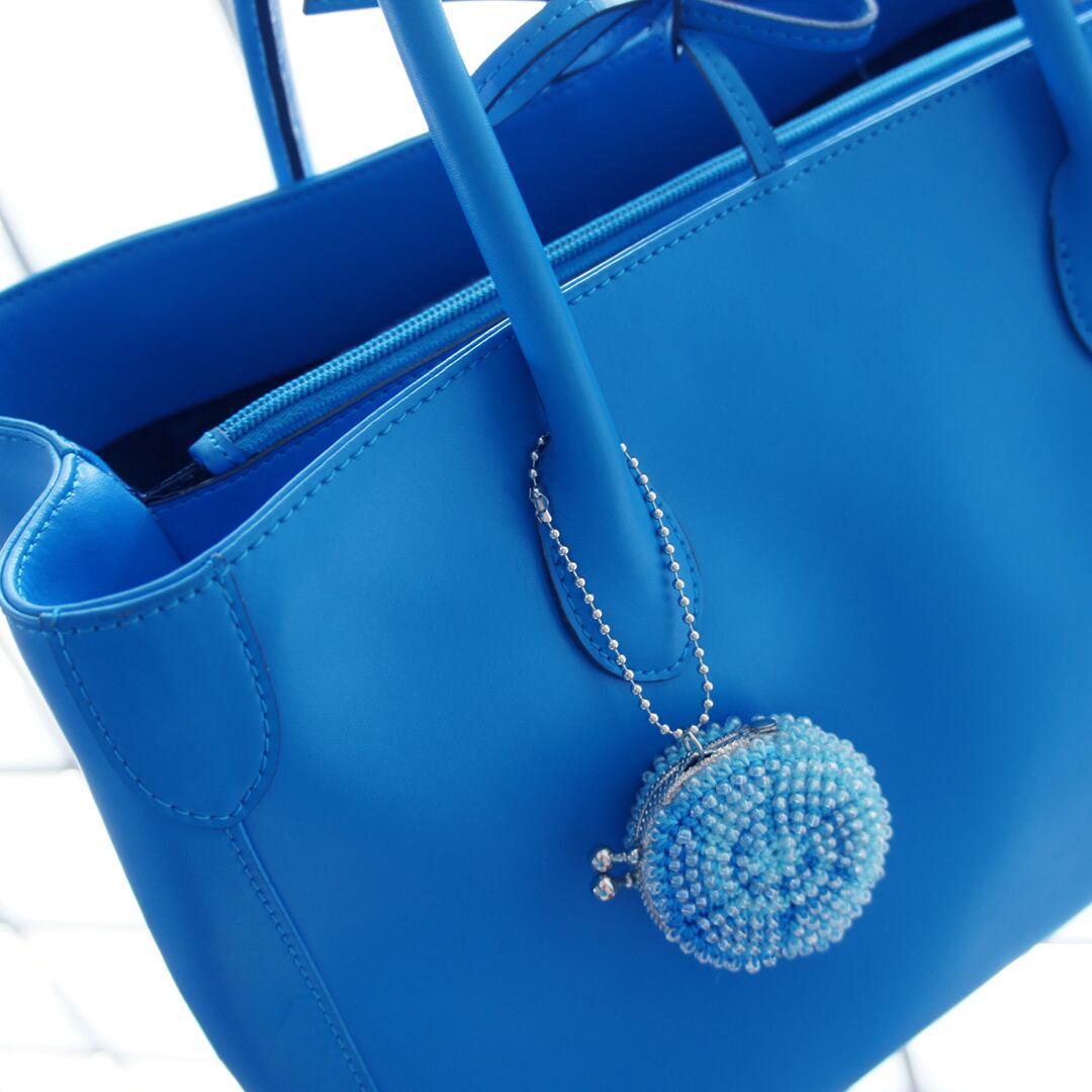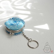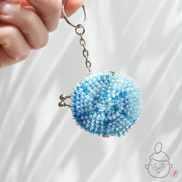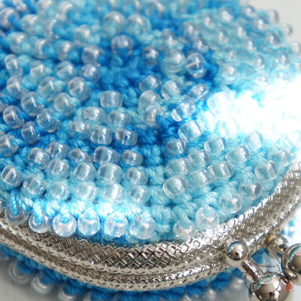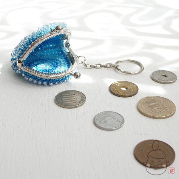 ガラスビーズをひとつぶづつ編み込んだ「ちびまる」がま口です。