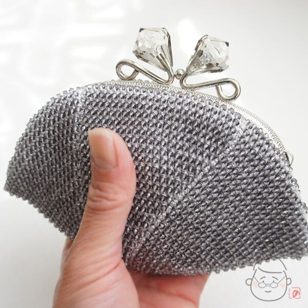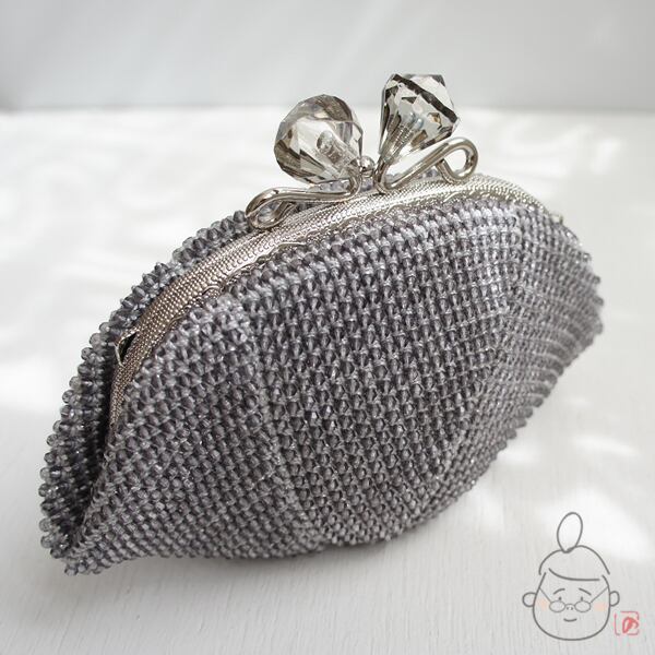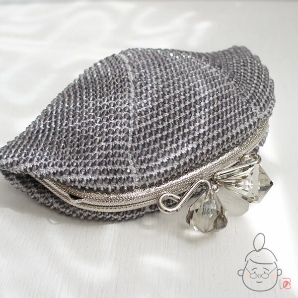 ばあば作♪アクリルビーズのさらに大きめがま口(silvergray・1080)