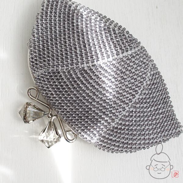 口金 : 柄入りシルバー×クリアグレー、12.5cm、くし形