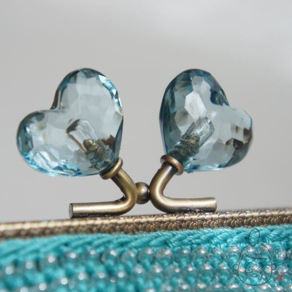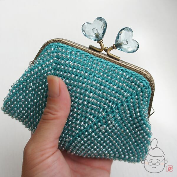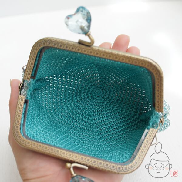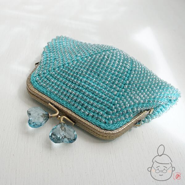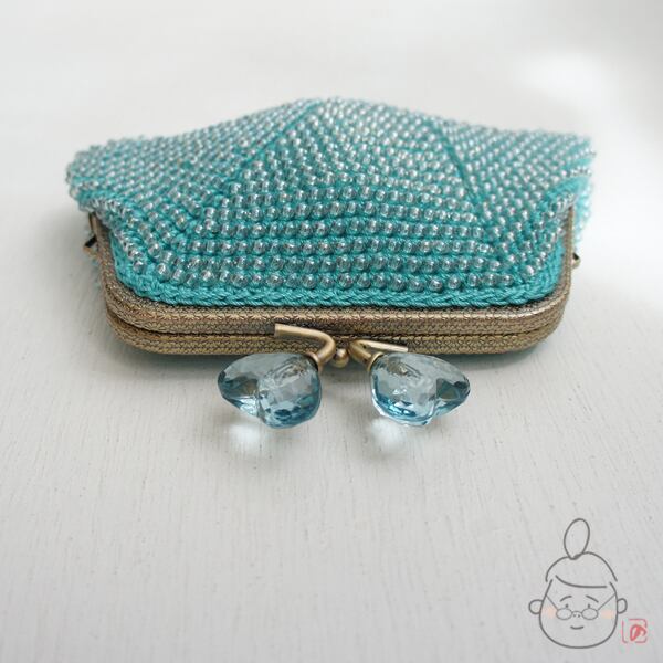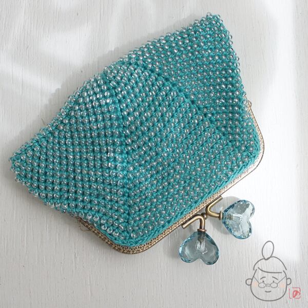 ばあば作、ガラスビーズの大きめスクエアがま口 (emerald・1107)