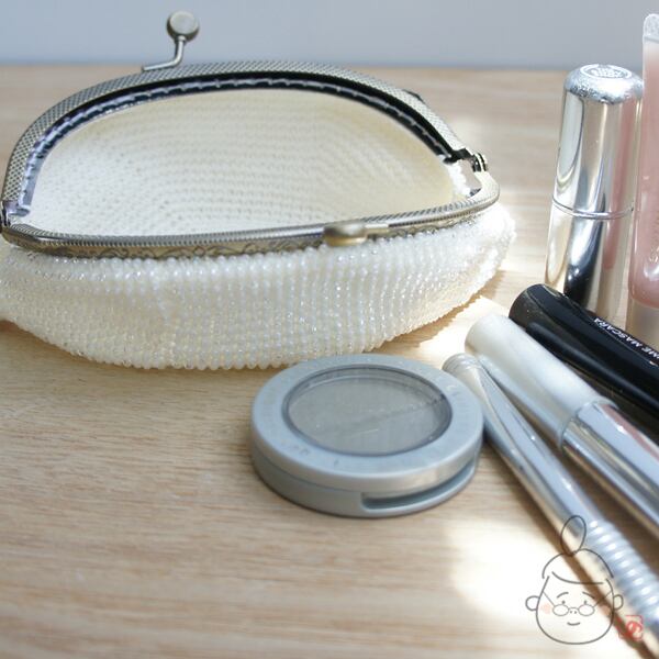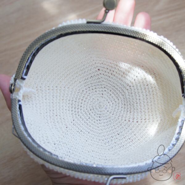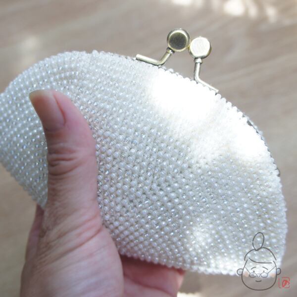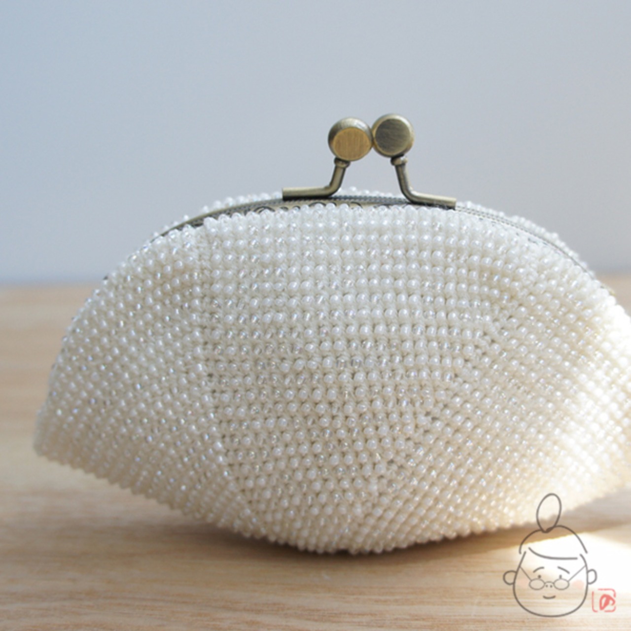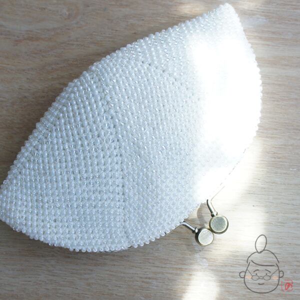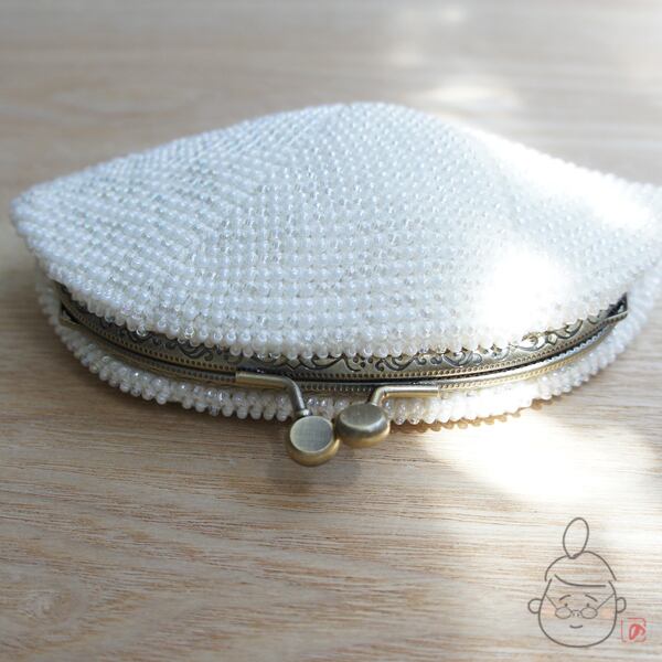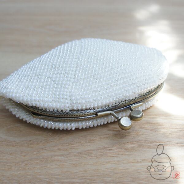 ばあば作☆シードビーズのさらに大きめがま口 (milky・1112)