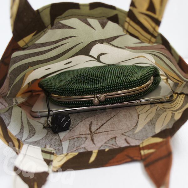 送料無料♪ ばあば作、レトロな手さげバッグ(leaf・RB5)