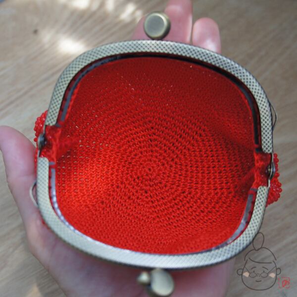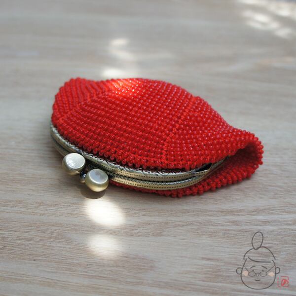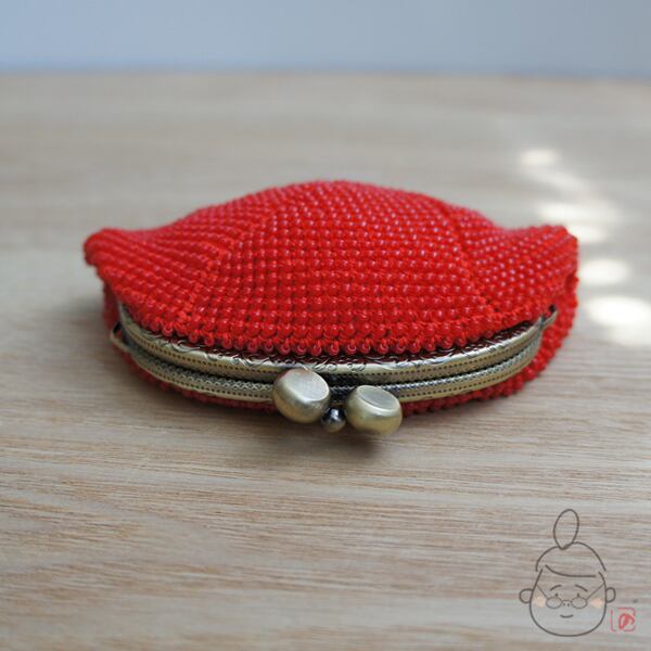 ばあば作☆☆シードビーズのがま口/おはじきつまみ(朱赤・1114)