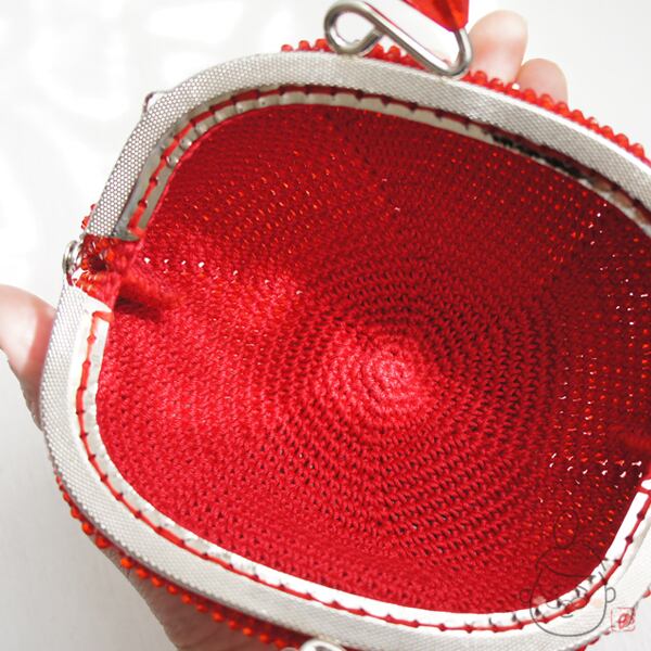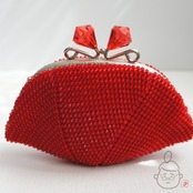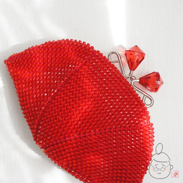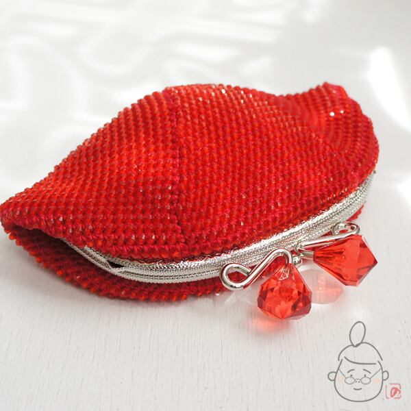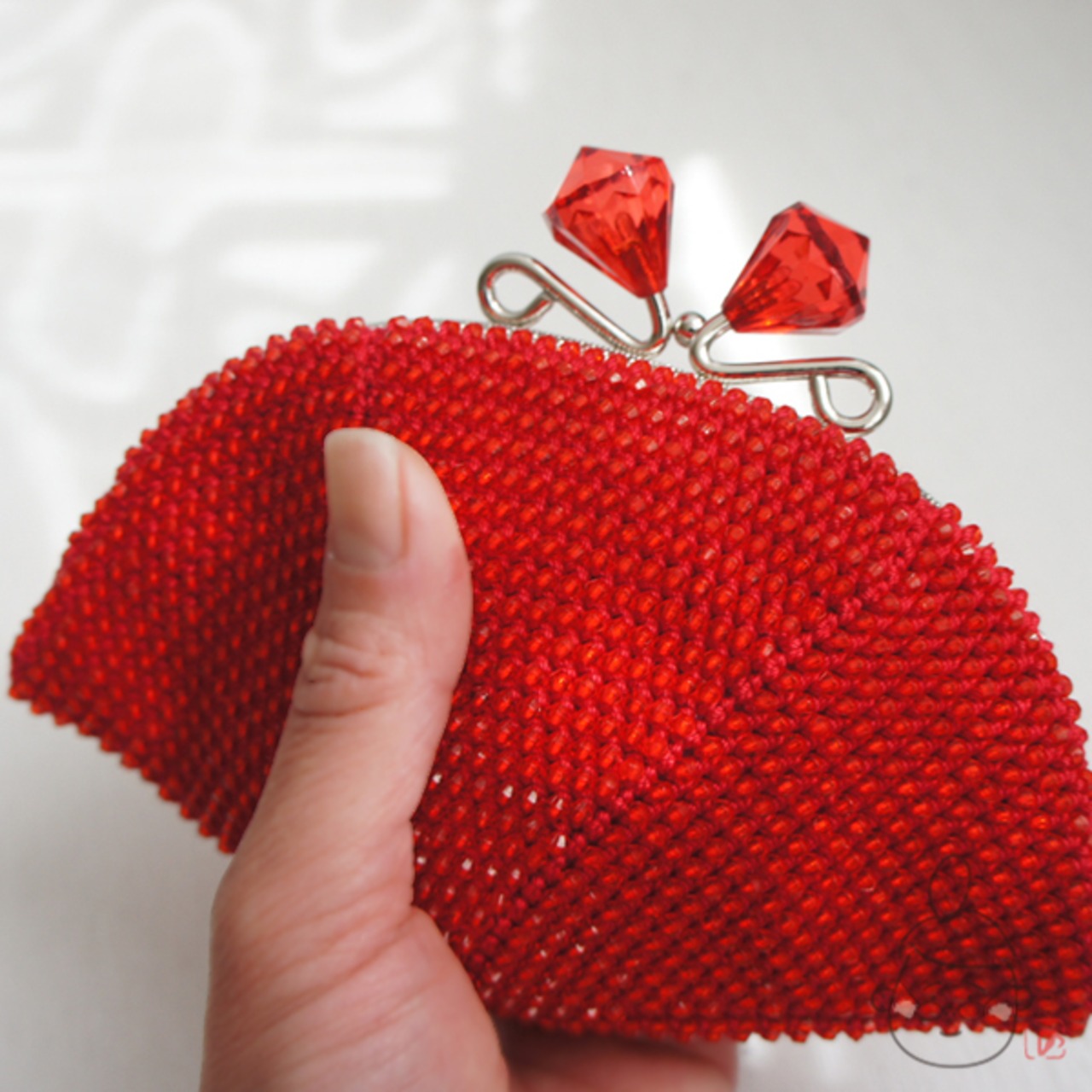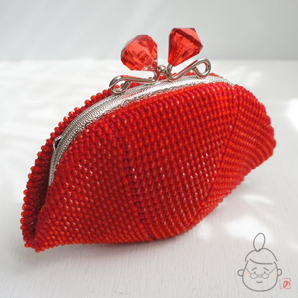 ばあば作♪アクリルビーズのさらに大きめがま口(ruby・1079)