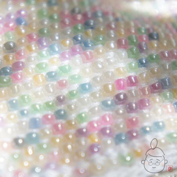 3mmのガラスビーズをひとつぶづつ、全面に編み込みました。