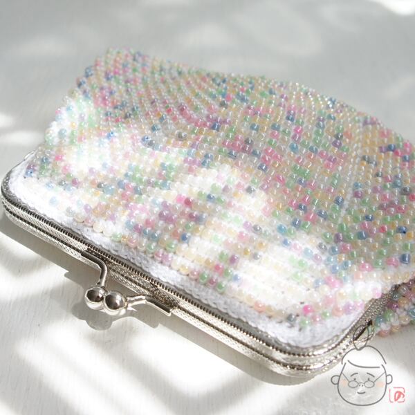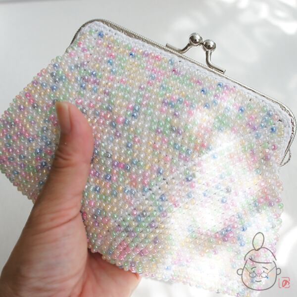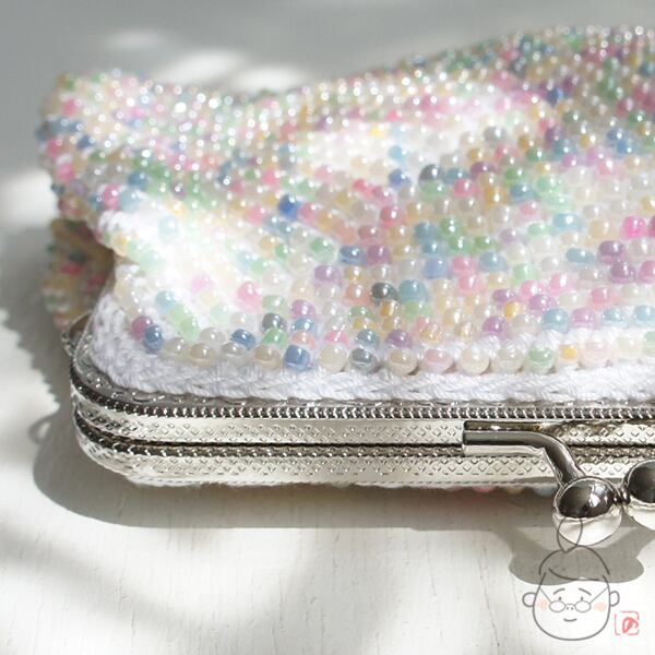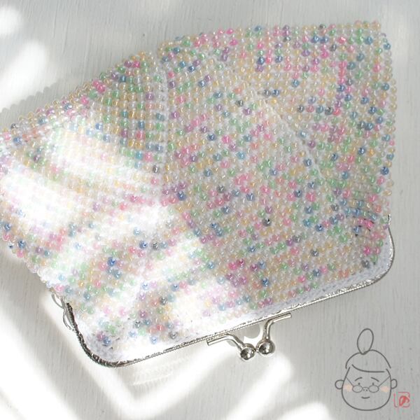 ばあば作☆☆さらに大きめ☆ガラスビーズのスクエアがま口 (pastelpaerl・1127)