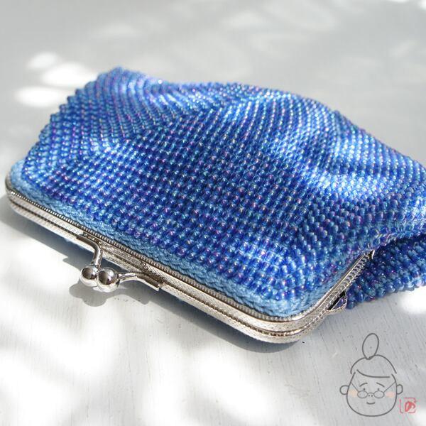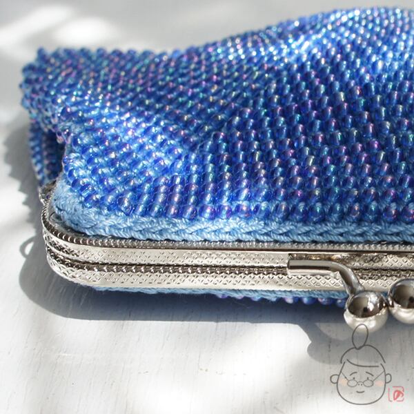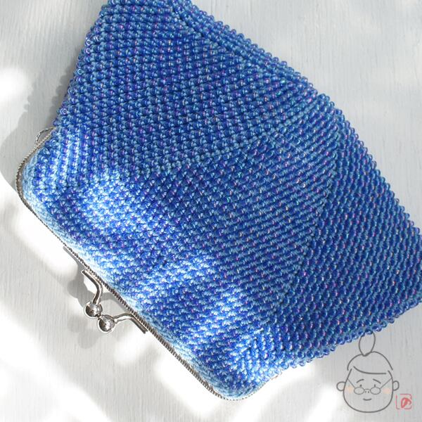 ばあば作☆☆さらに大きめ☆ガラスビーズのスクエアがま口 (そらいろ・1126)