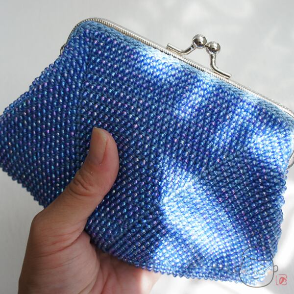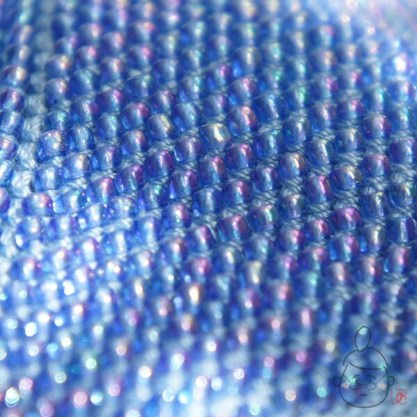 3mmのガラスビーズをひとつぶづつ、全面に編み込みました。