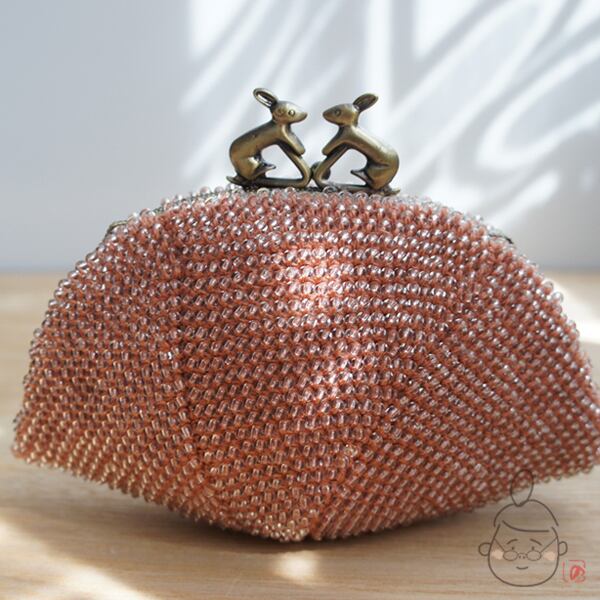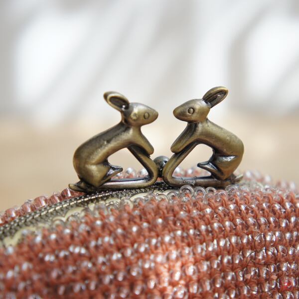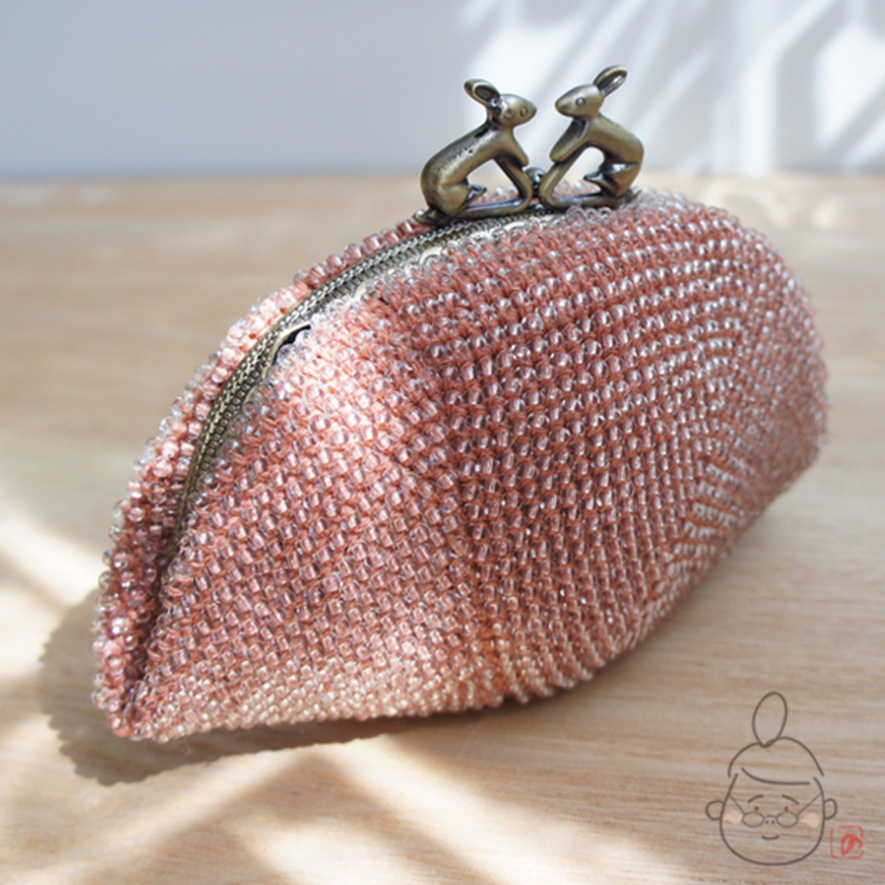 ばあば作☆☆さらに大きめビーズのウサギがま口 (walnut・1130)