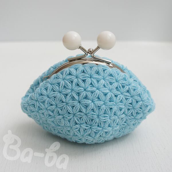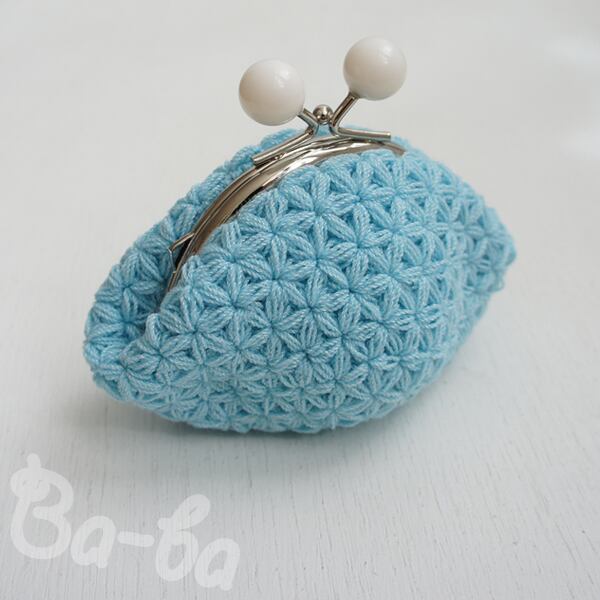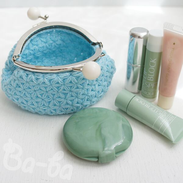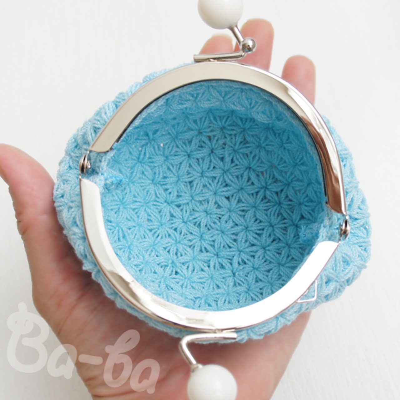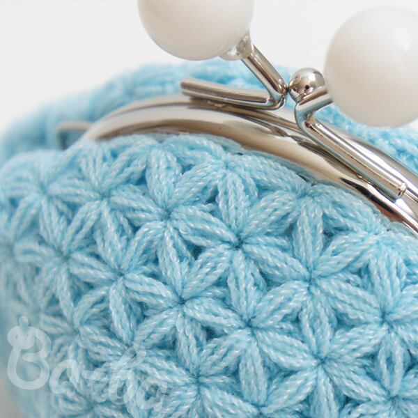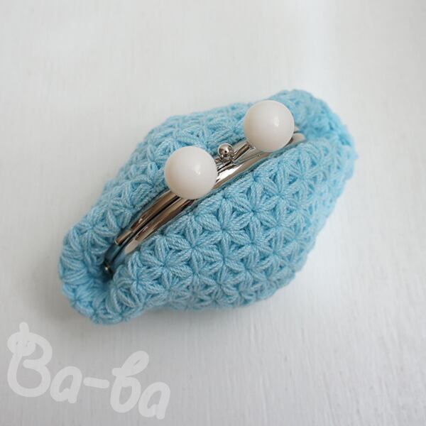 ばあば作♪リフ編みふわっとがま口(skyblue・C1261)