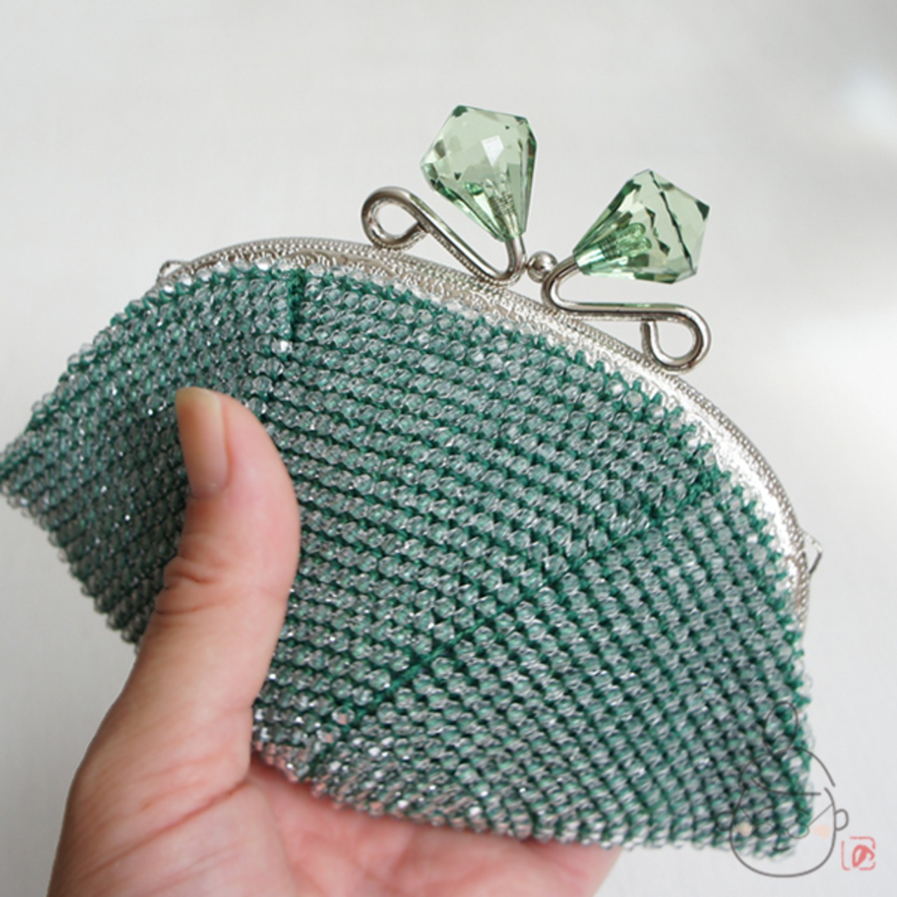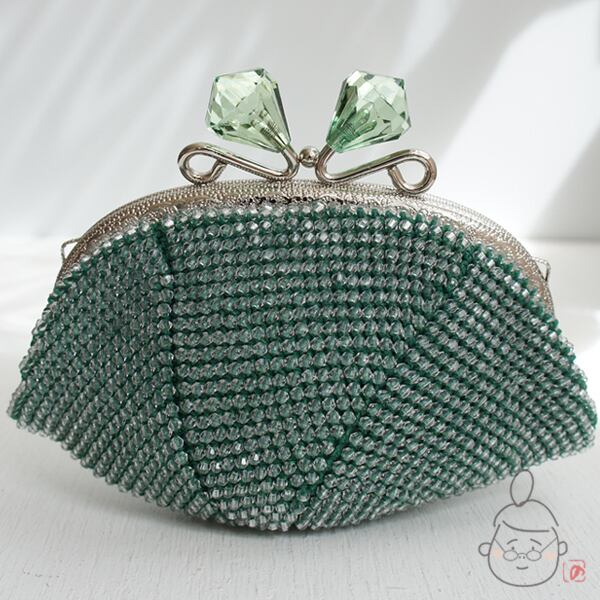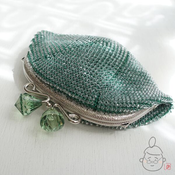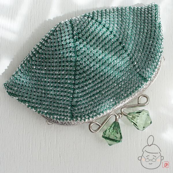 ばあば作♪アクリルビーズのさらに大きめがま口(マラカイトグリーン・1106)